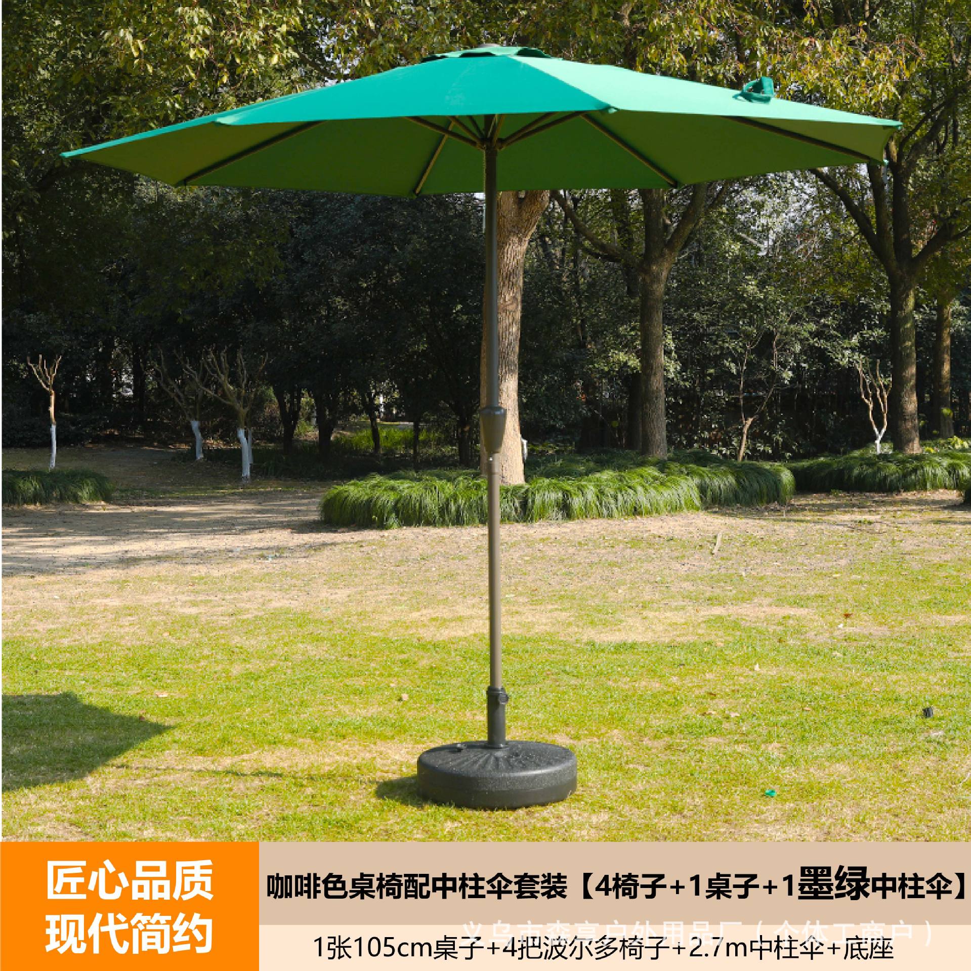 • 짙은 녹색 중간 기둥 우산 + 보르도 테이블과 의자
