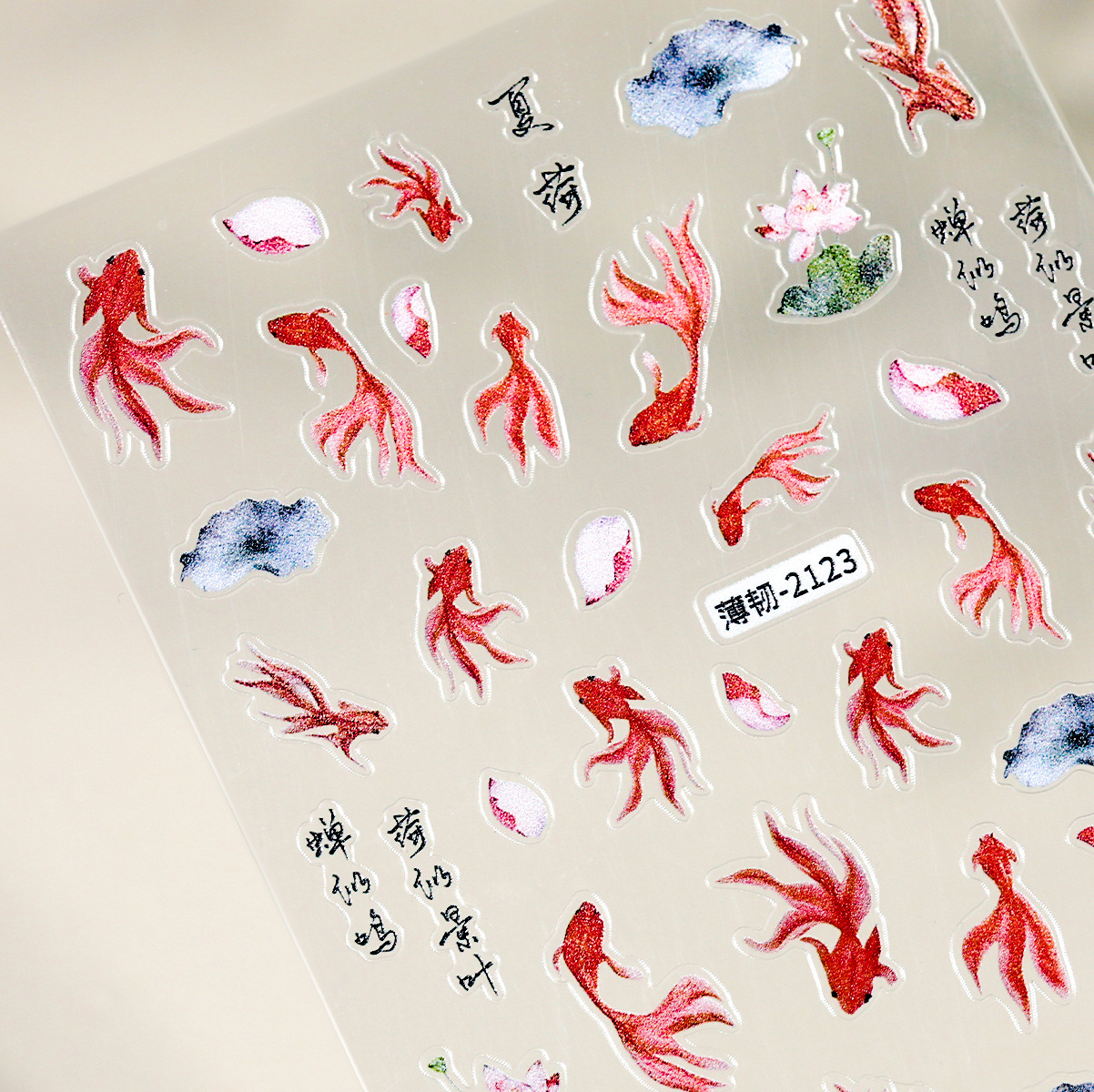 Guofeng Koi 네일 스티커 방수 벨트 접착 골동품 잉크 코이 네일 스티커 보석 얇은 터프스토어 가기