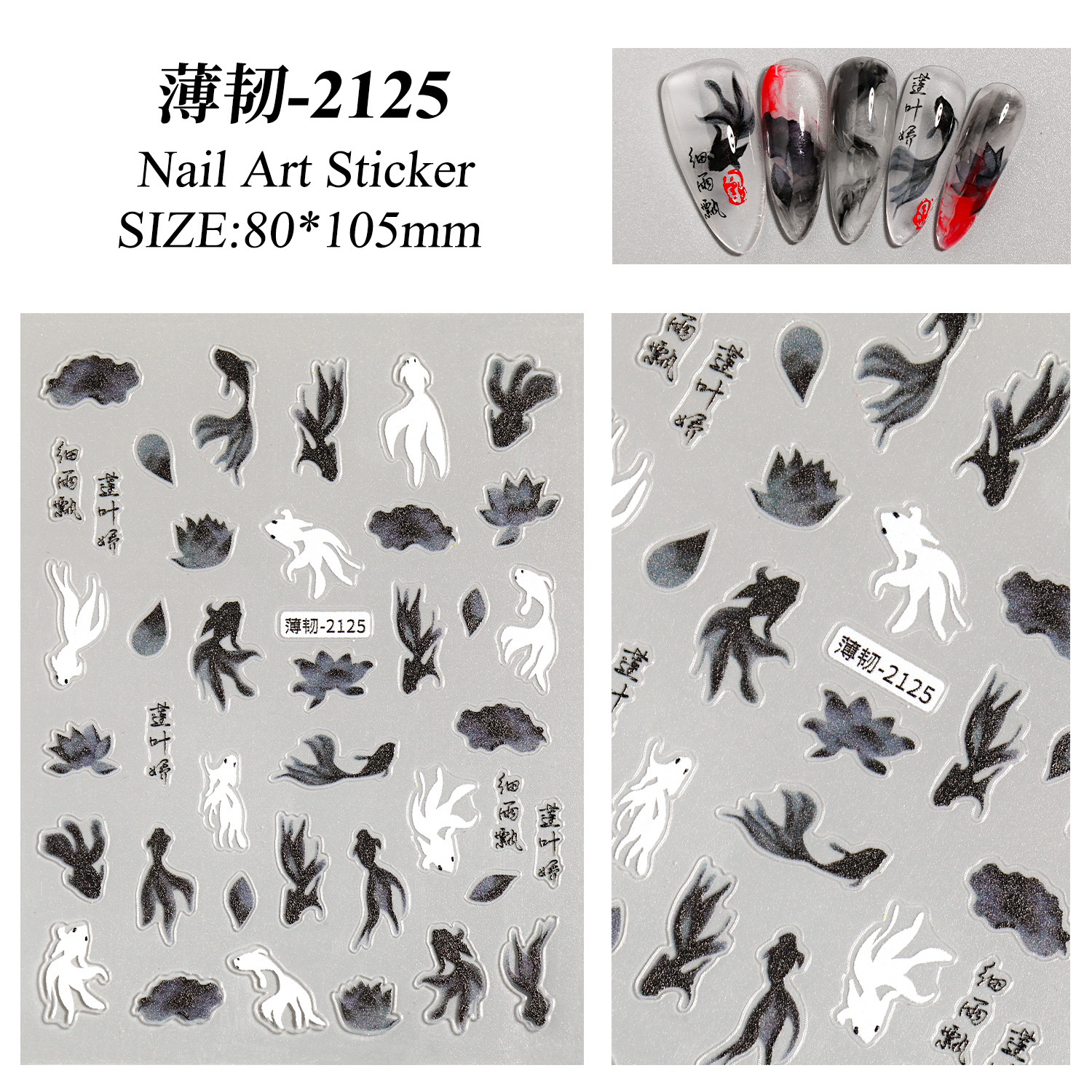 Guofeng Koi 네일 스티커 방수 벨트 접착 골동품 잉크 코이 네일 스티커 보석 얇은 터프