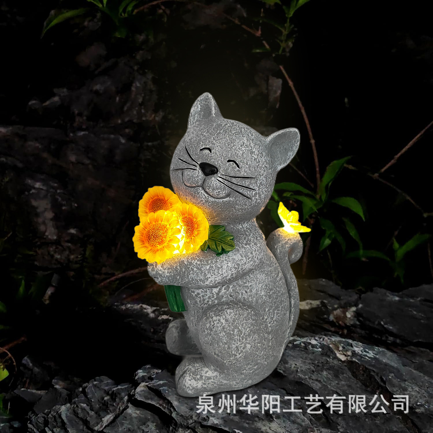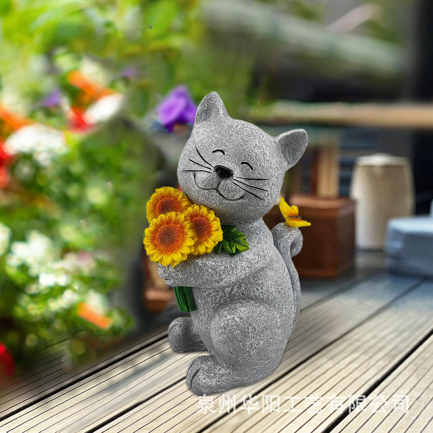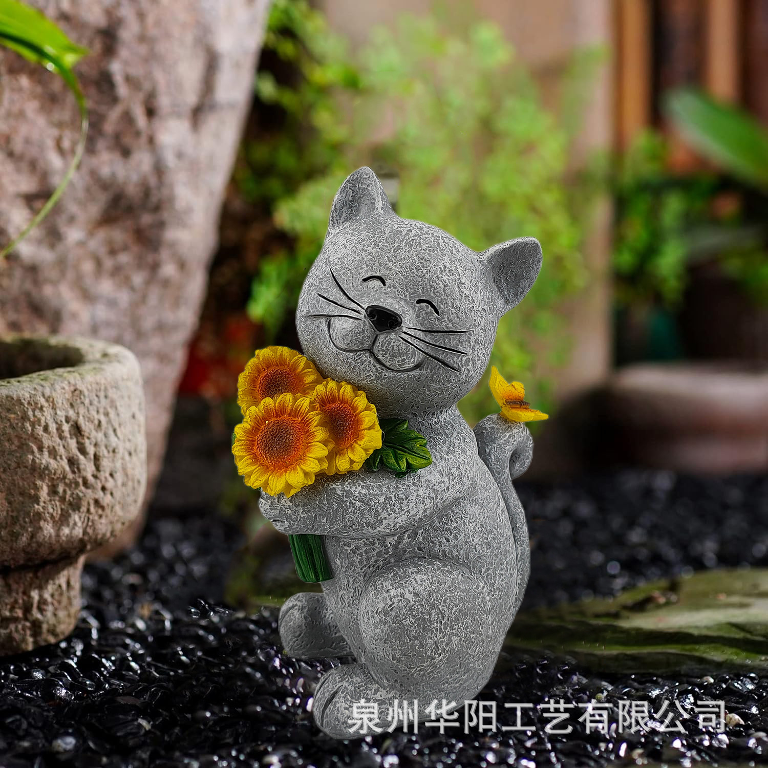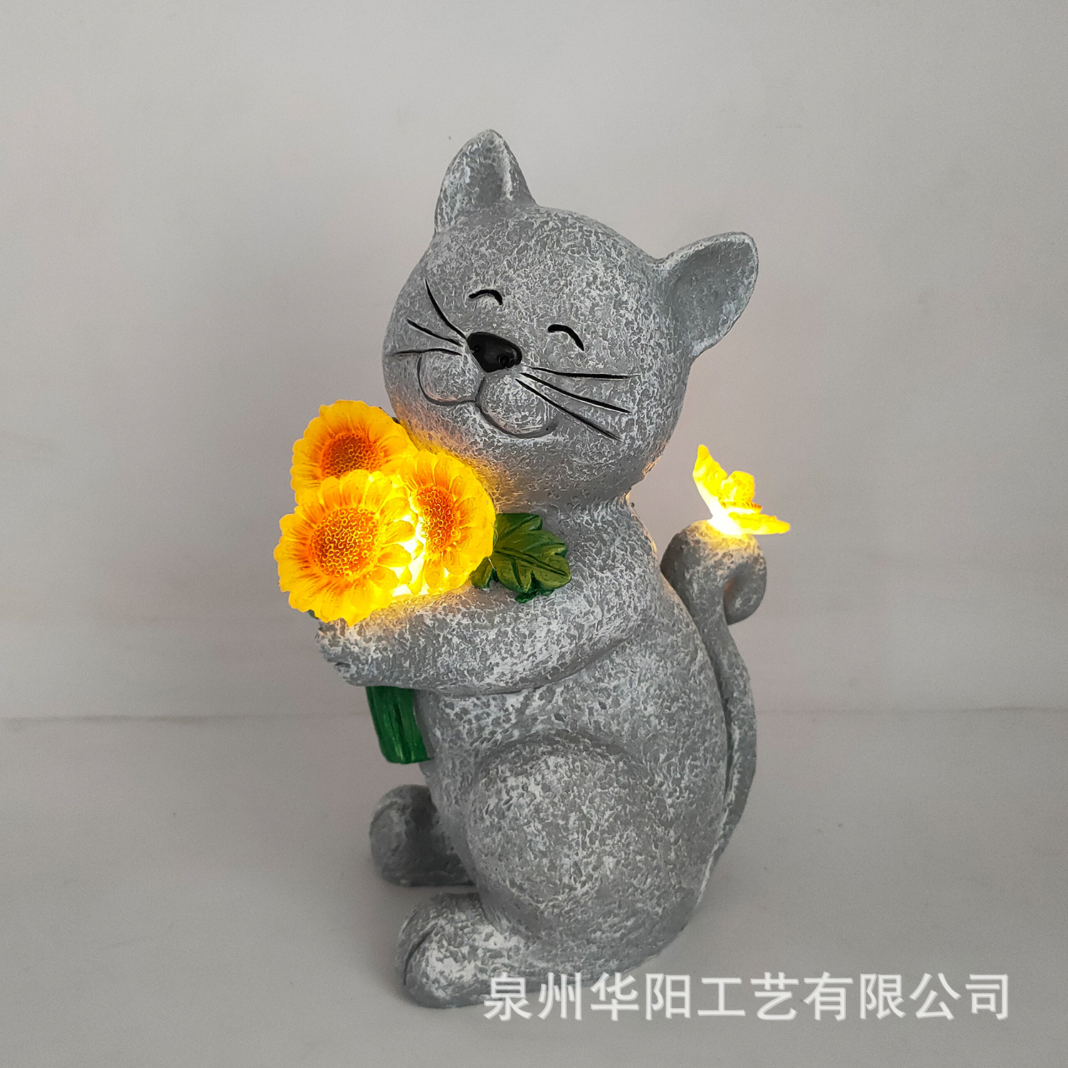 국경 간 새로운 태양 정원 동상 고양이 해바라기 꽃 조명 안뜰 잔디 장식 집들이 선물