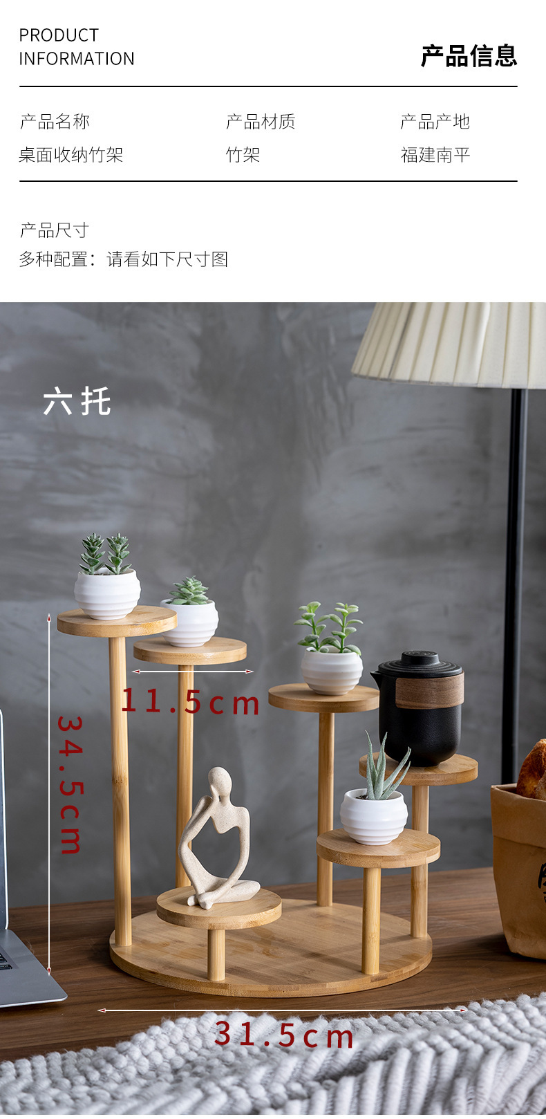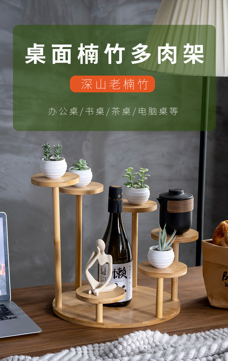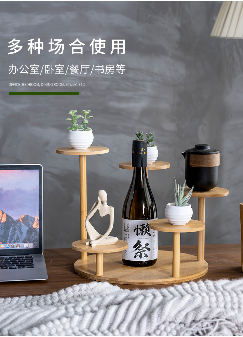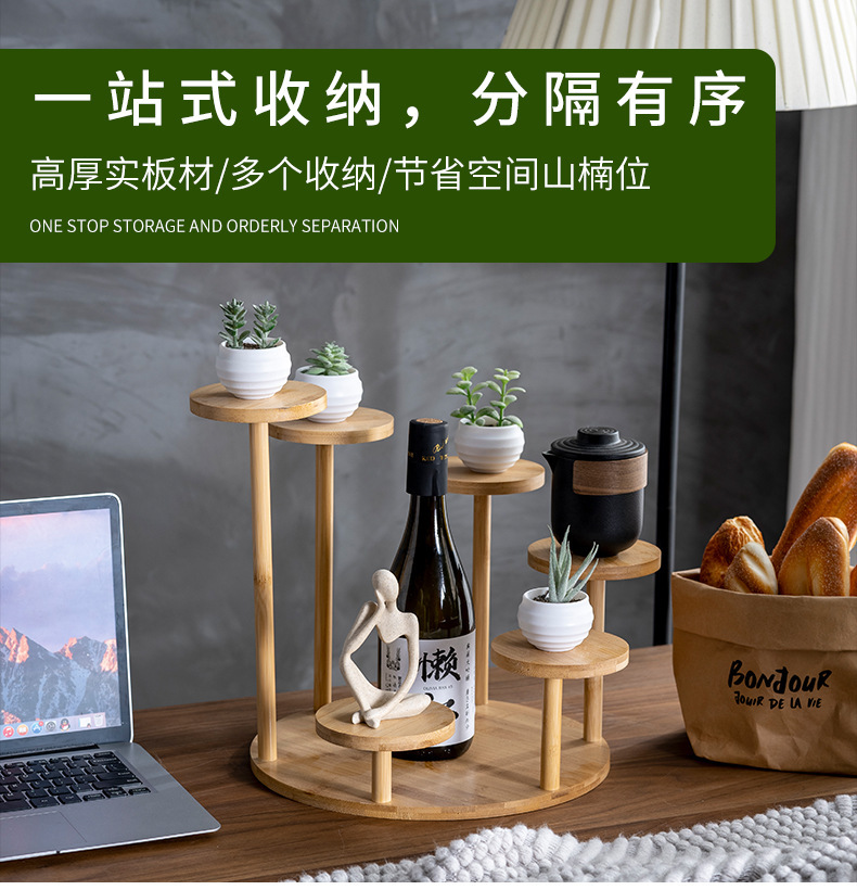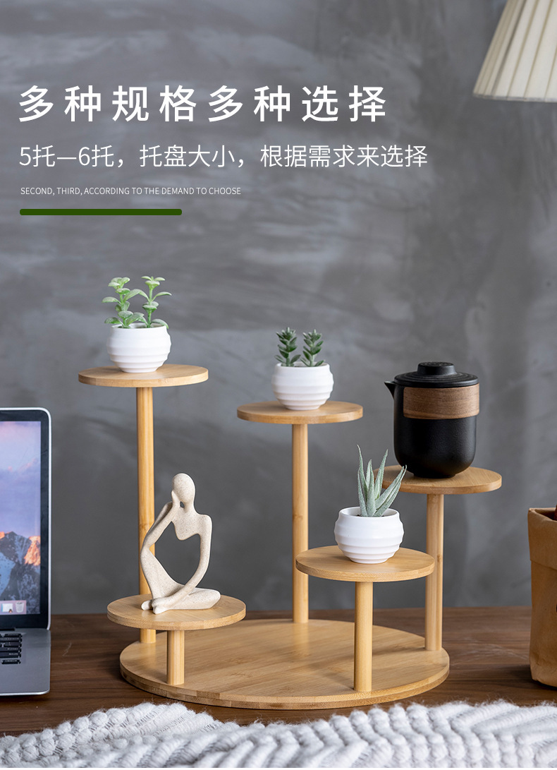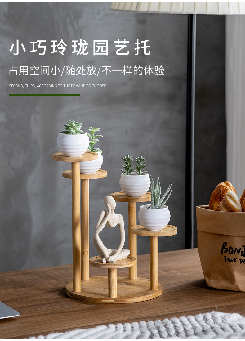 대나무 저장 랙 실내 가정용 다층 거실 꽃 랙 데스크탑 장식 작은 꽃 랙 창조적 인 접시 꽃 냄비 랙 도매