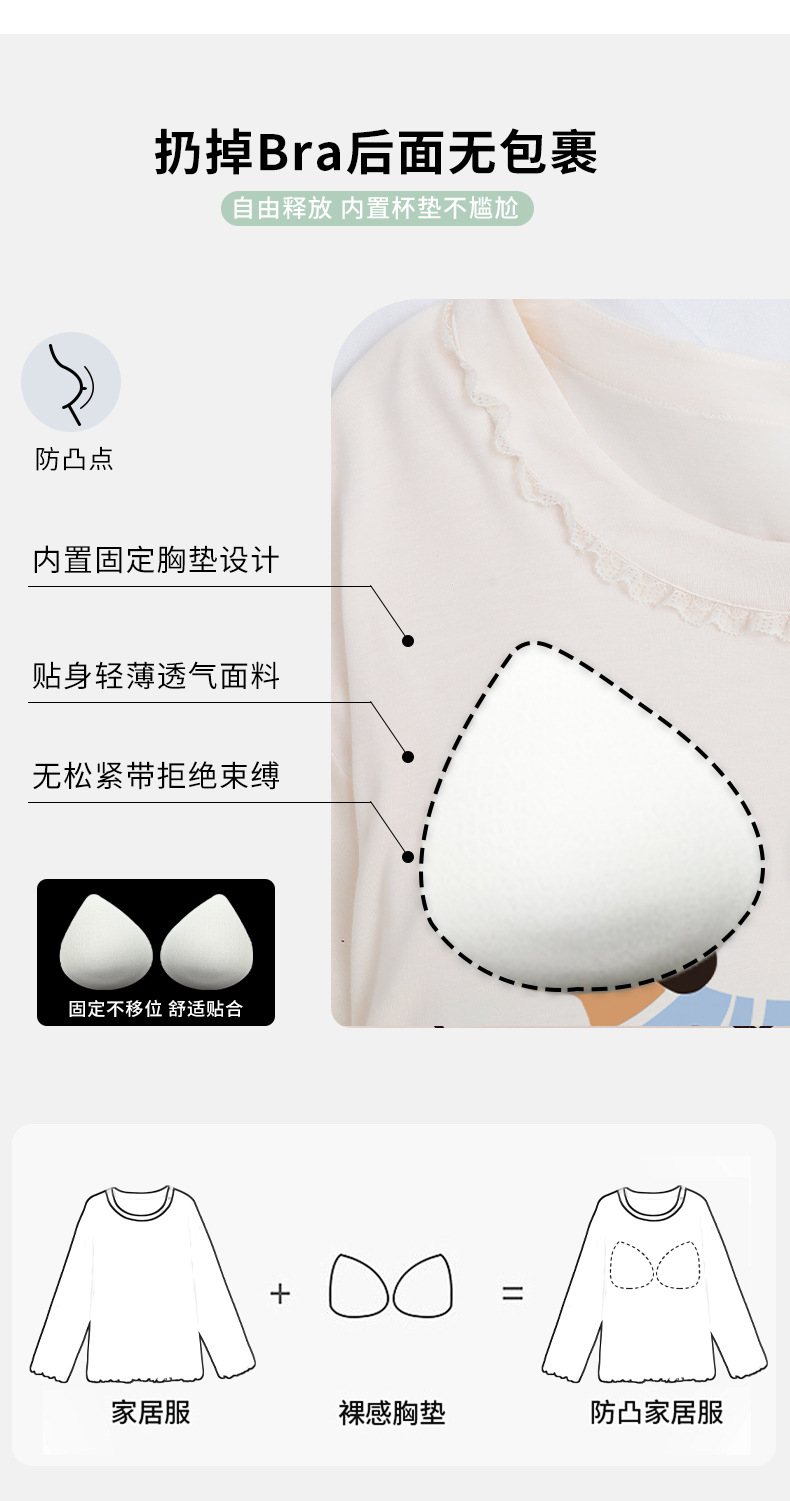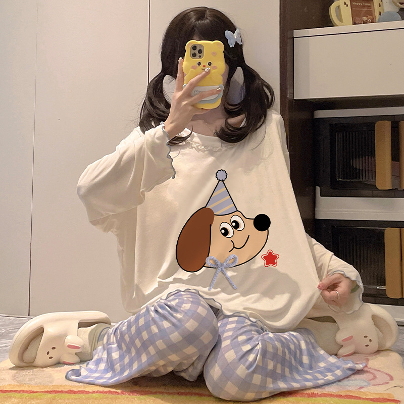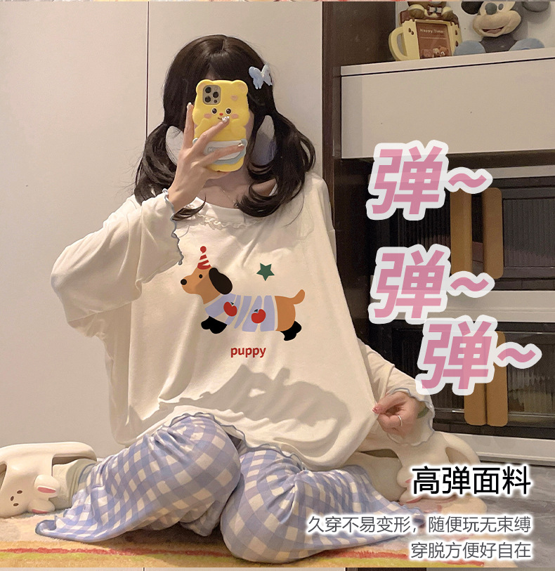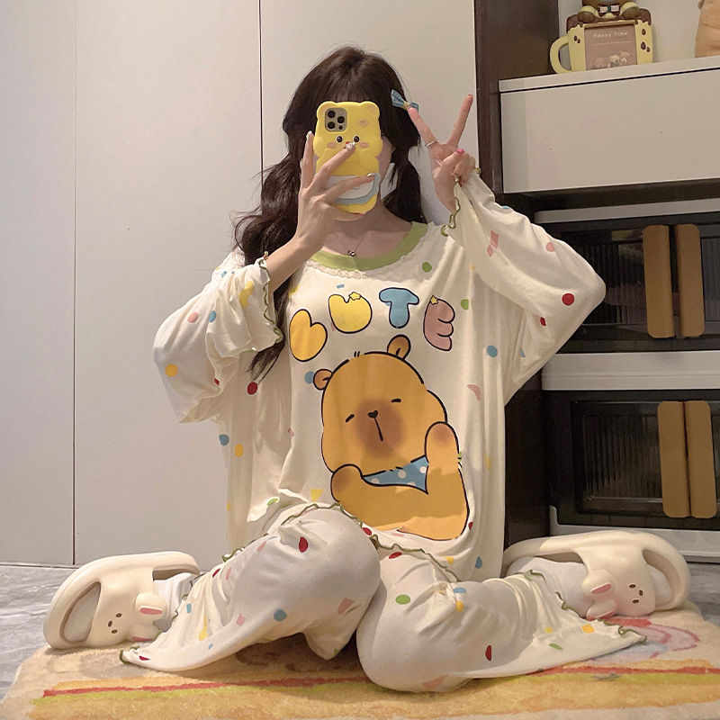 여자 잠옷 중학생 만화 소녀 18 세 봄과 여름 모달 긴 소매 얇은 홈 옷 가슴 패드스토어 가기