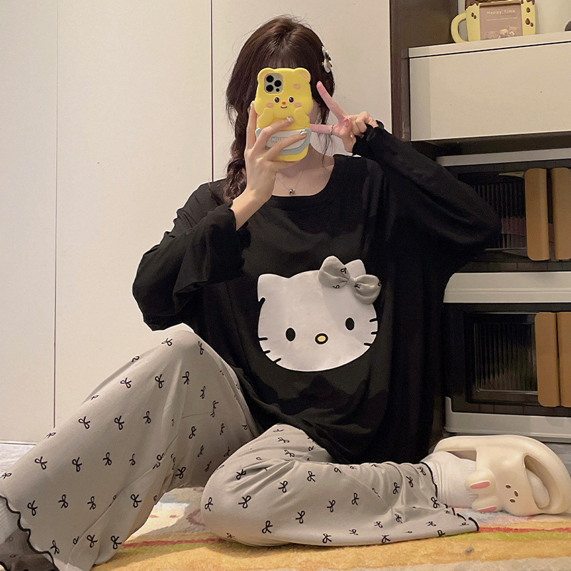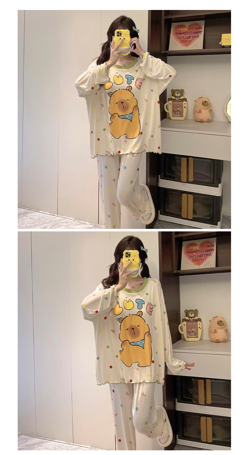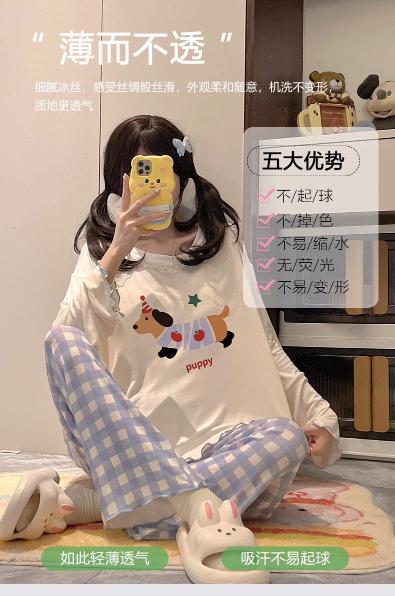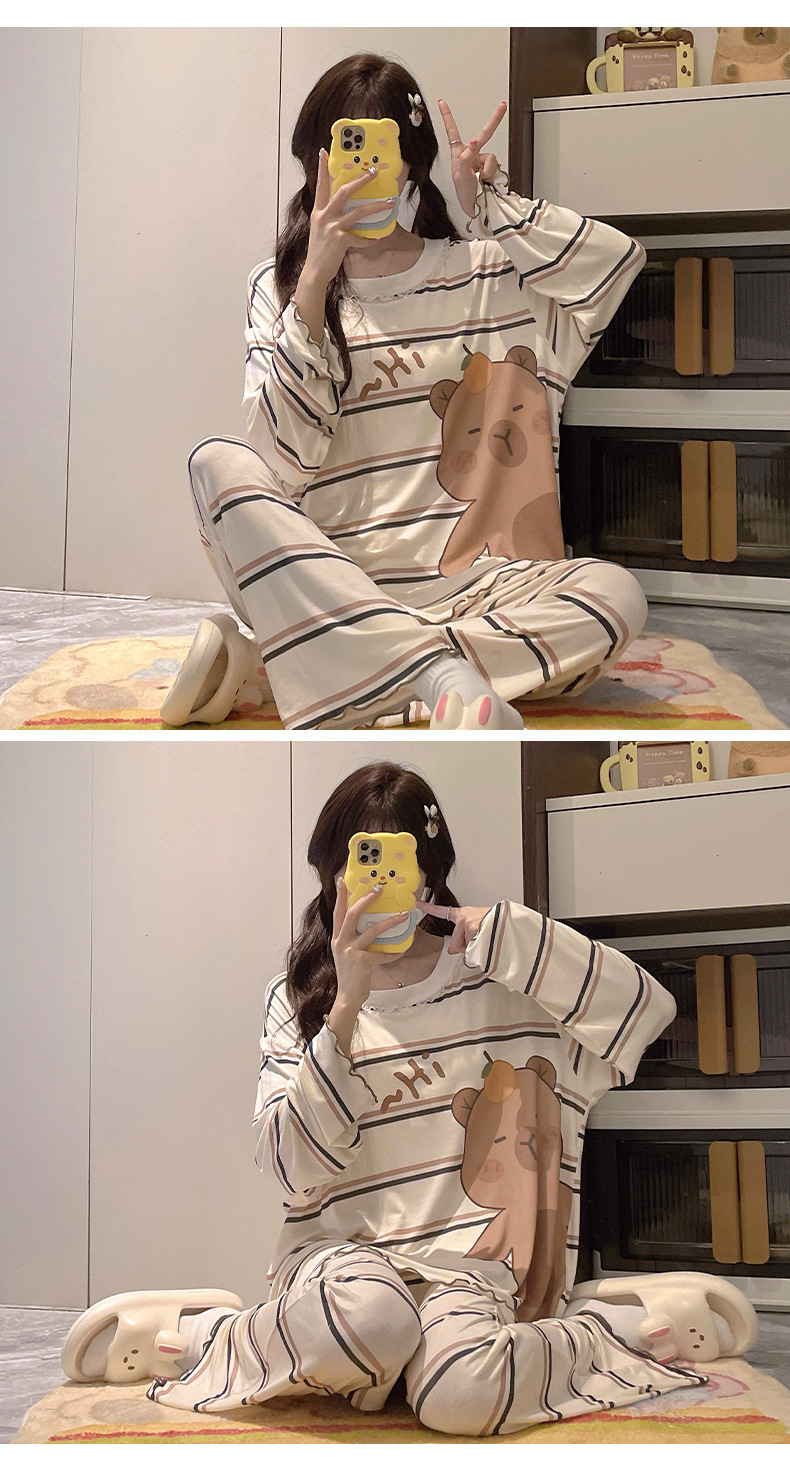 여자 잠옷 중학생 만화 소녀 18 세 봄과 여름 모달 긴 소매 얇은 홈 옷 가슴 패드스토어 가기