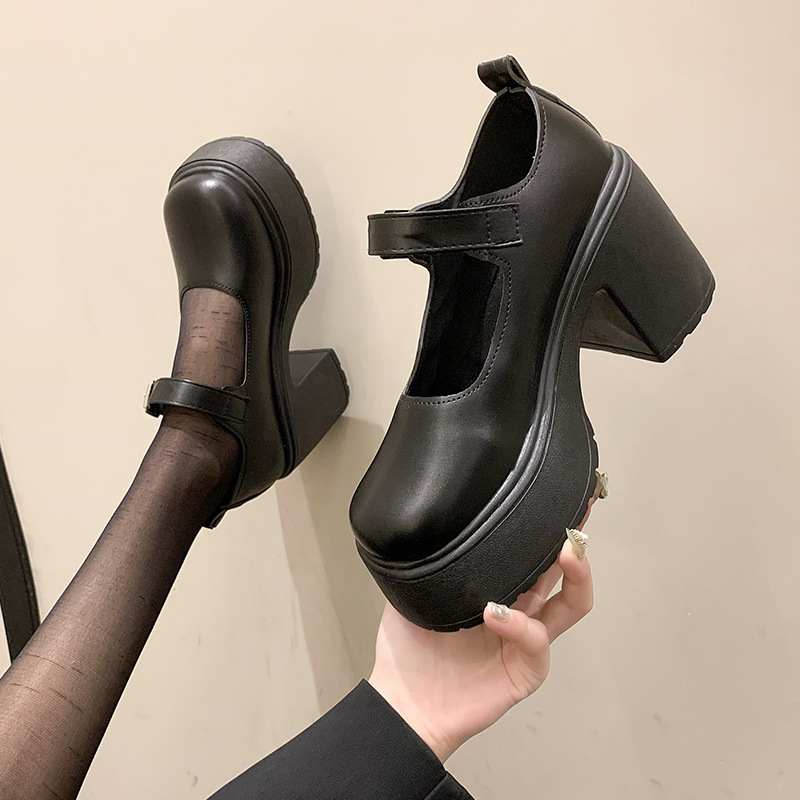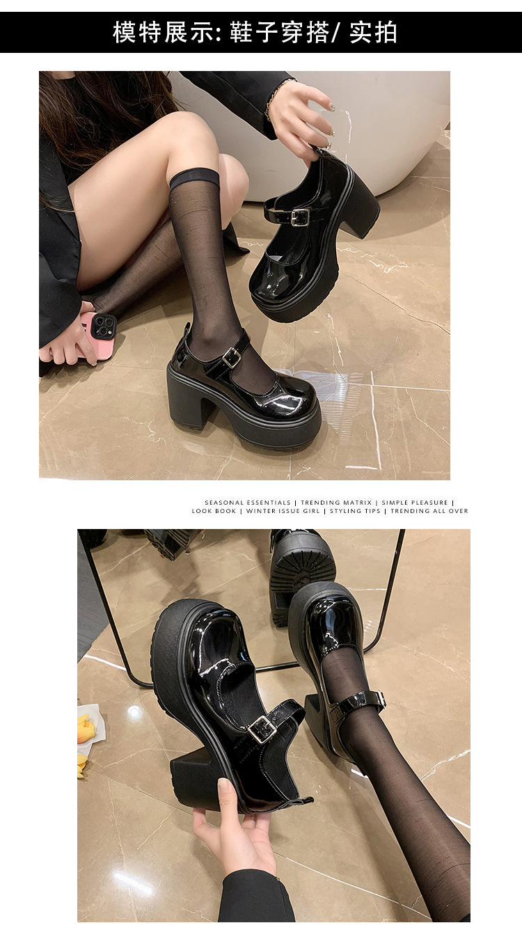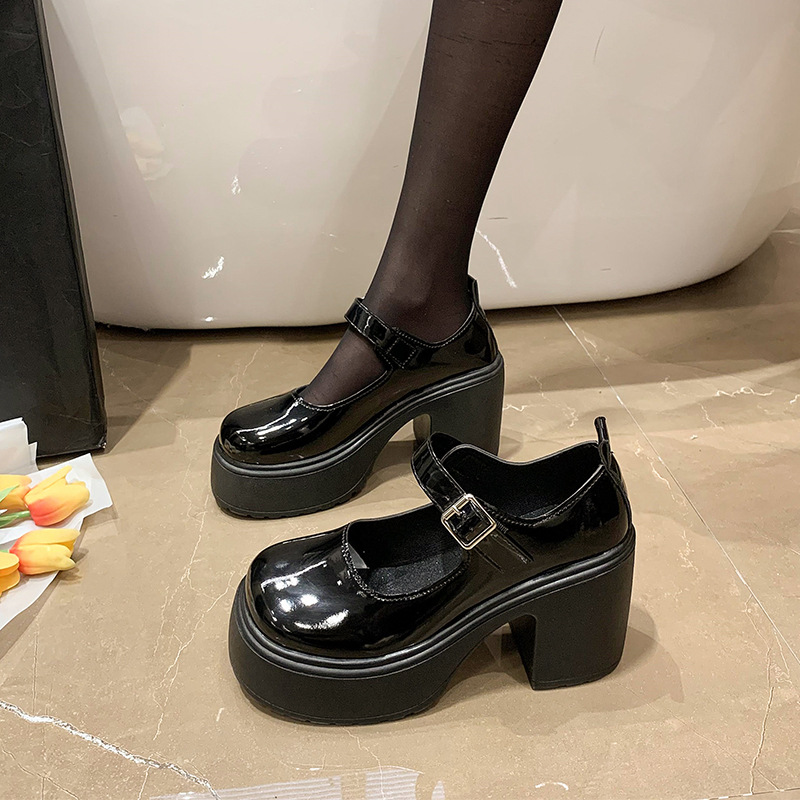 밝은 하이힐 가죽 신발 2025 봄과 여름 새로운 블랙 두꺼운 굽 플랫폼 신발 올 매치 프렌치 레트로 여성 신발스토어 가기