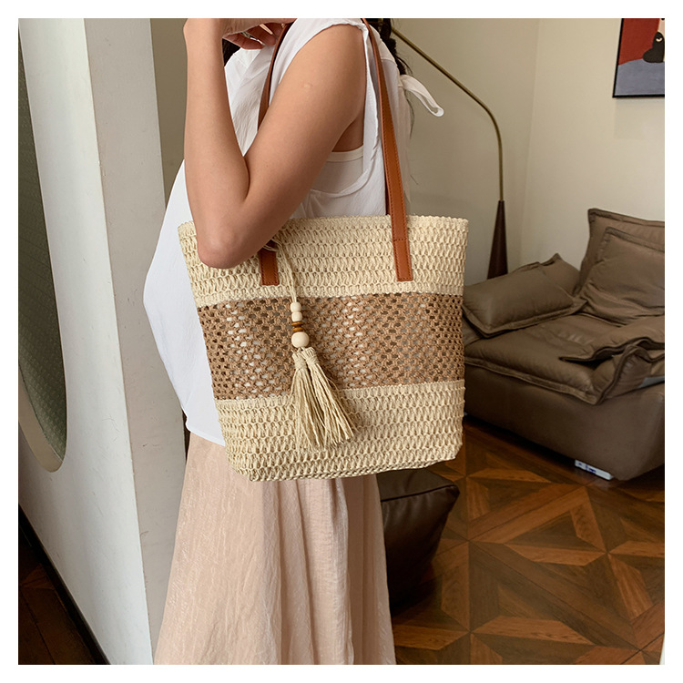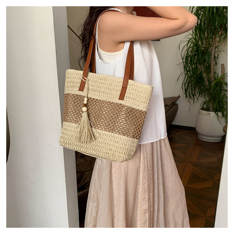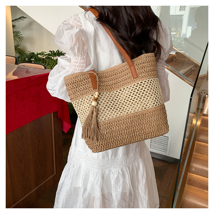 국경 간 밀짚 가방 여성 대용량 캐주얼 2025 해변 휴가 용 새 봄과 여름 어깨 비치 백스토어 가기
