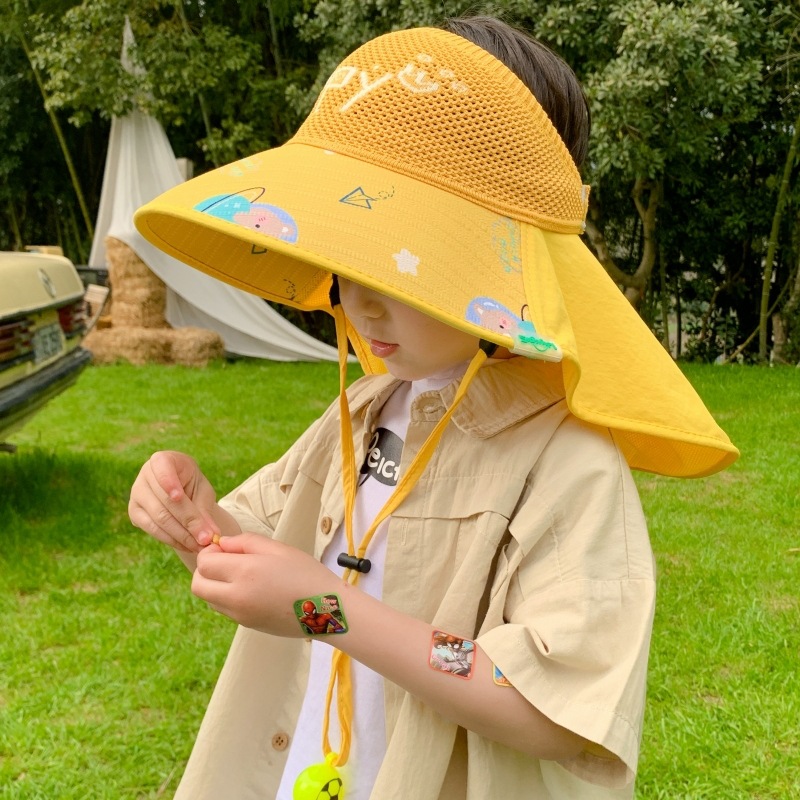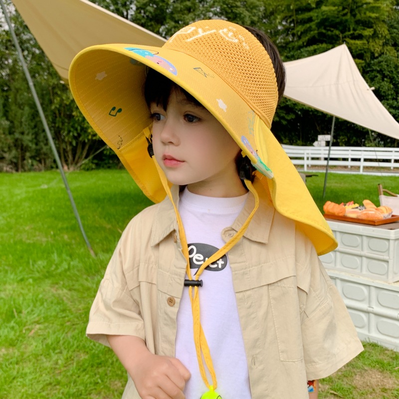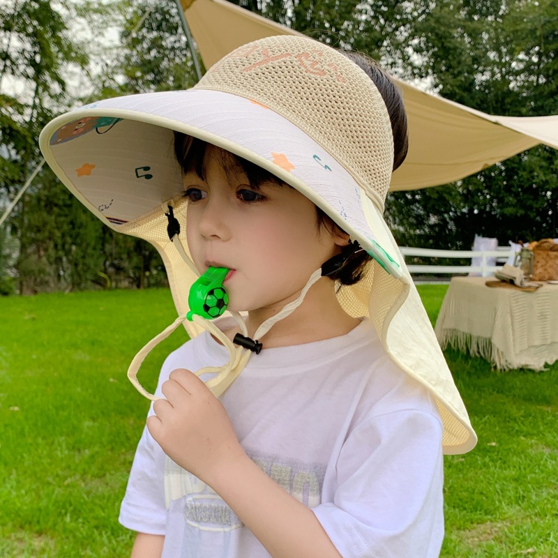 어린이 선 스크린 모자 소년 소녀를위한 여름 큰 처마 목도리 통기성 메쉬 그늘 어부 모자 아기 야외 태양 모자