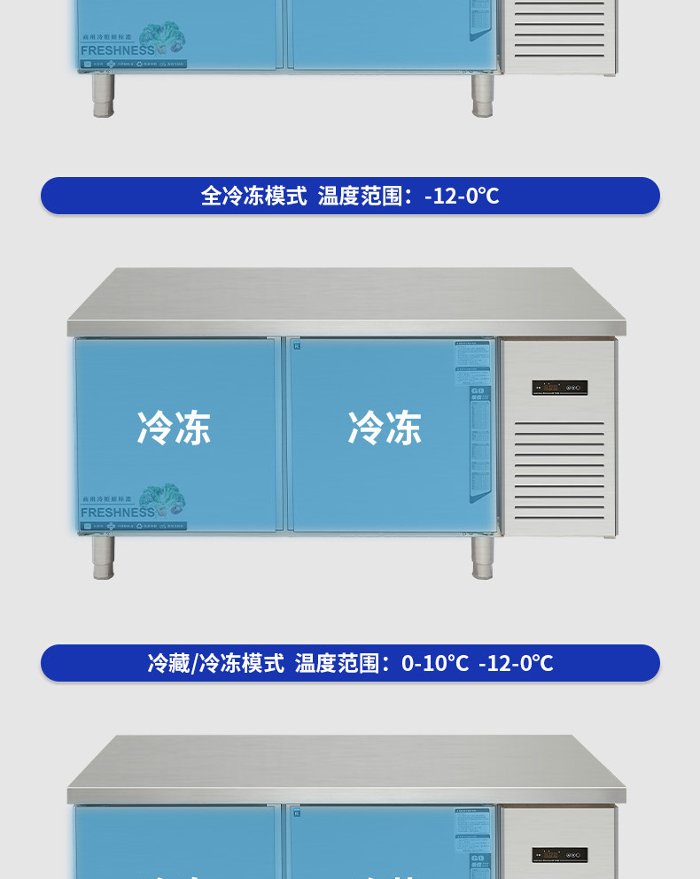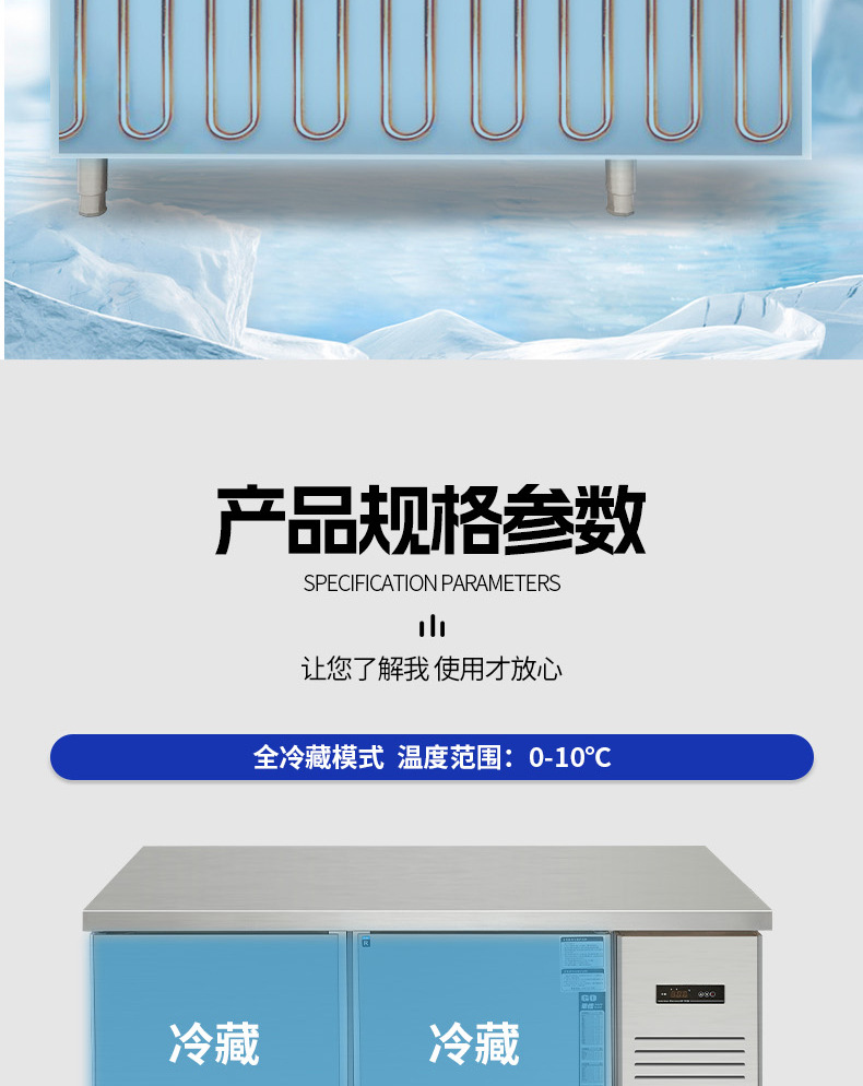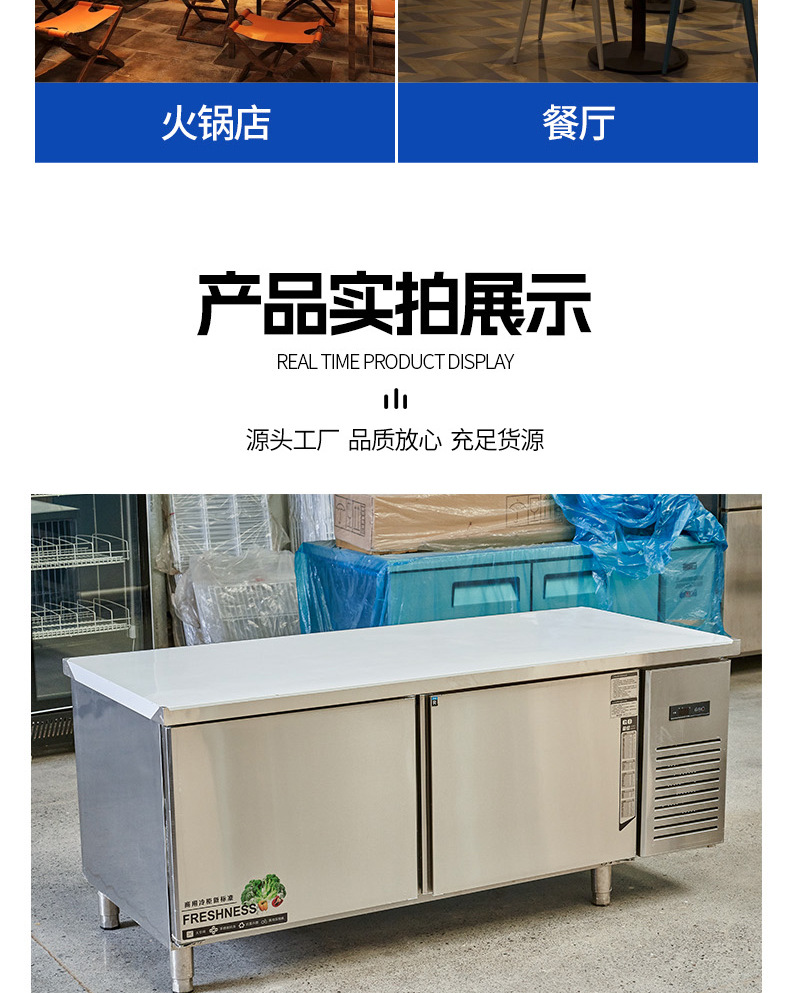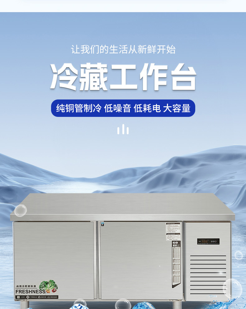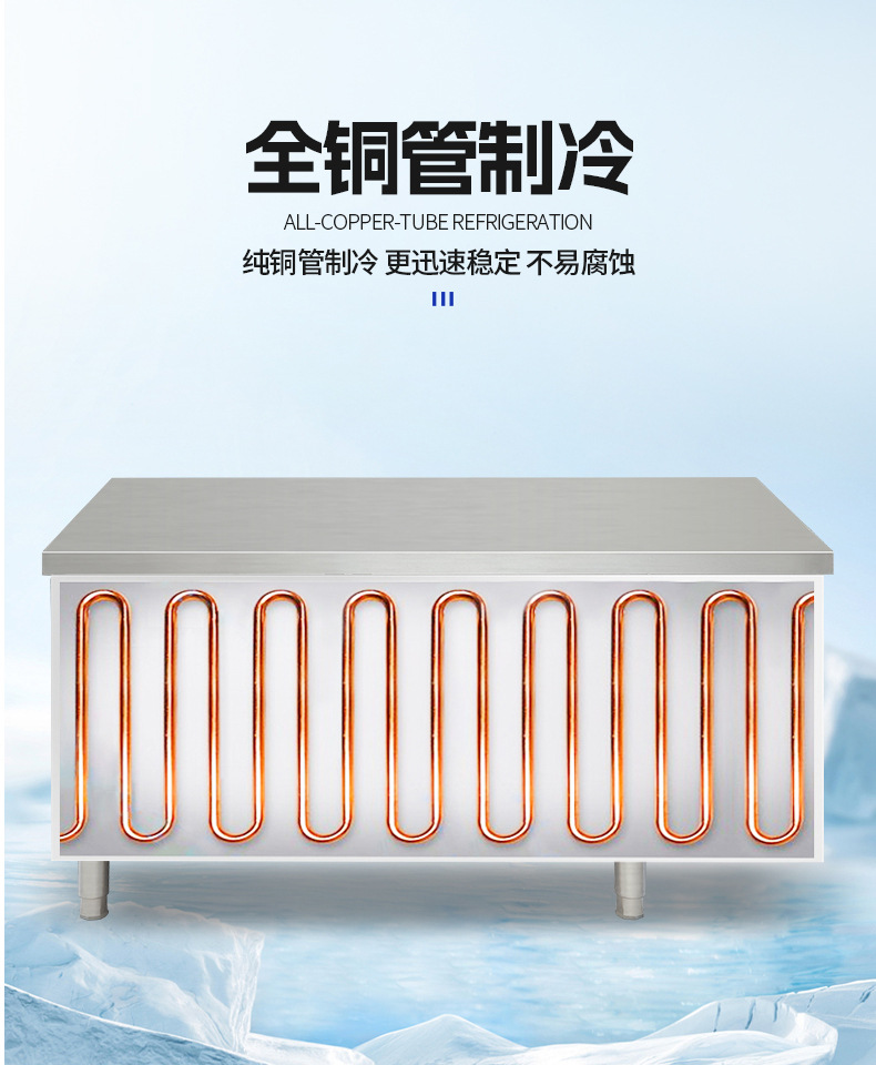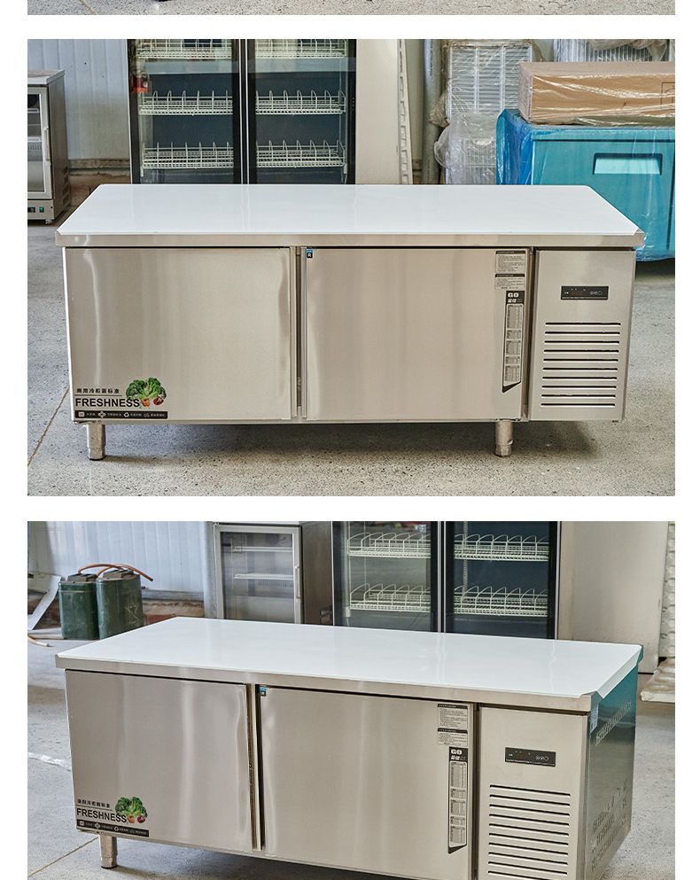 냉장 작업대 상업용 주방 스테인레스 스틸 작동 테이블 식품 보존 냉동고 워터 바 구리 튜브 냉동 무료스토어 가기