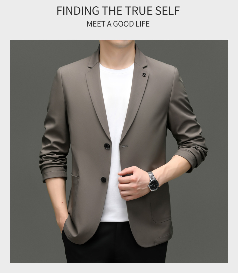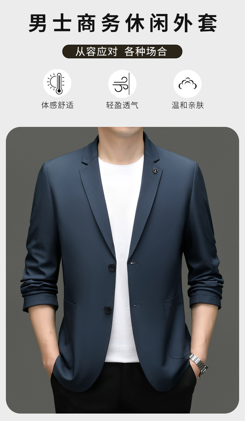 도매 하이 엔드 봄과 가을 뽕나무 실크 캐주얼 세트 남성 작은 세트 재킷 비즈니스 세트 선 스크린 싱글 웨스턴 재킷스토어 가기