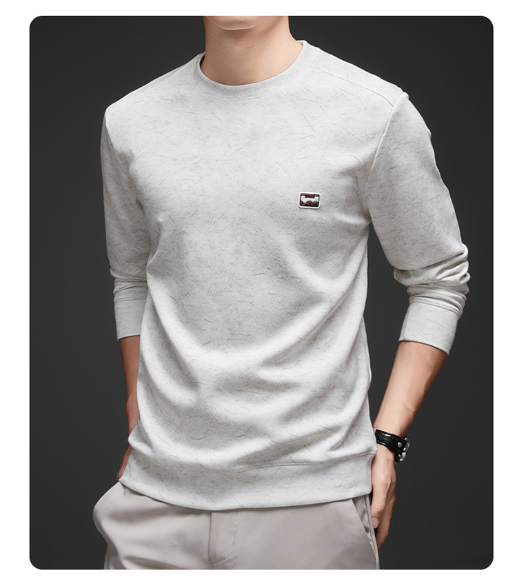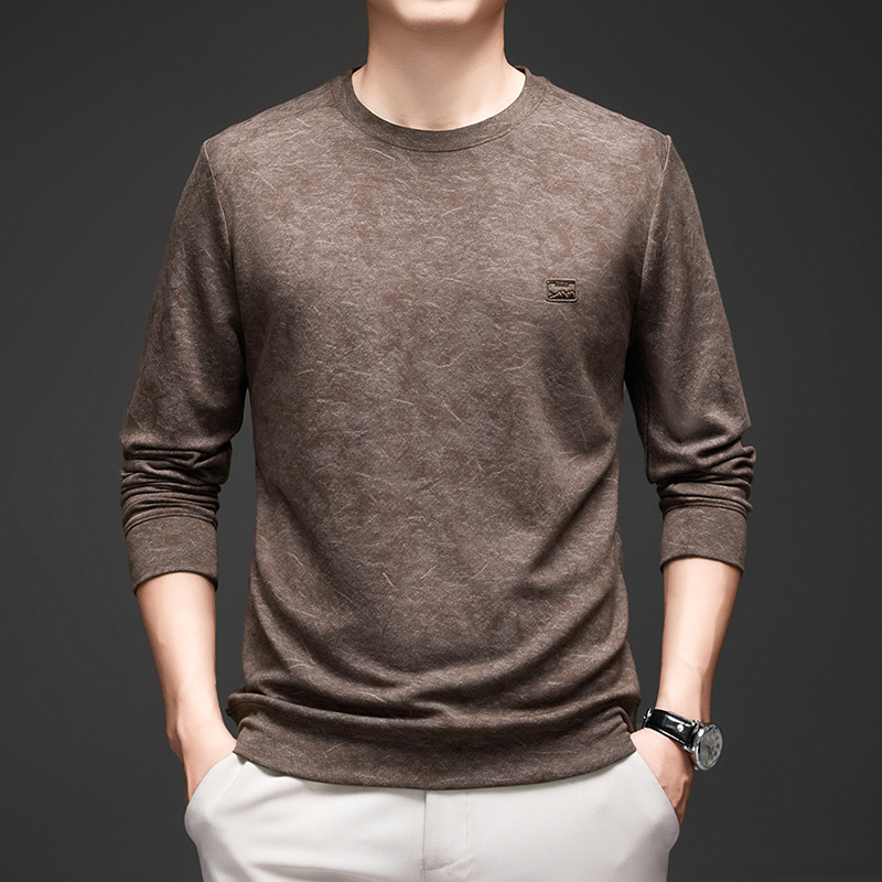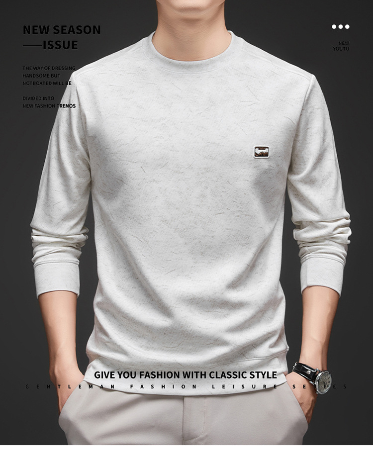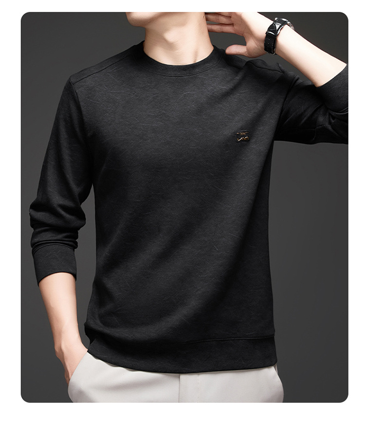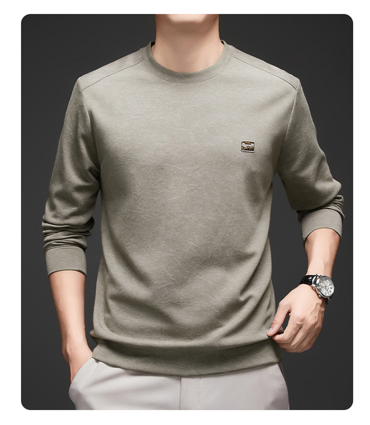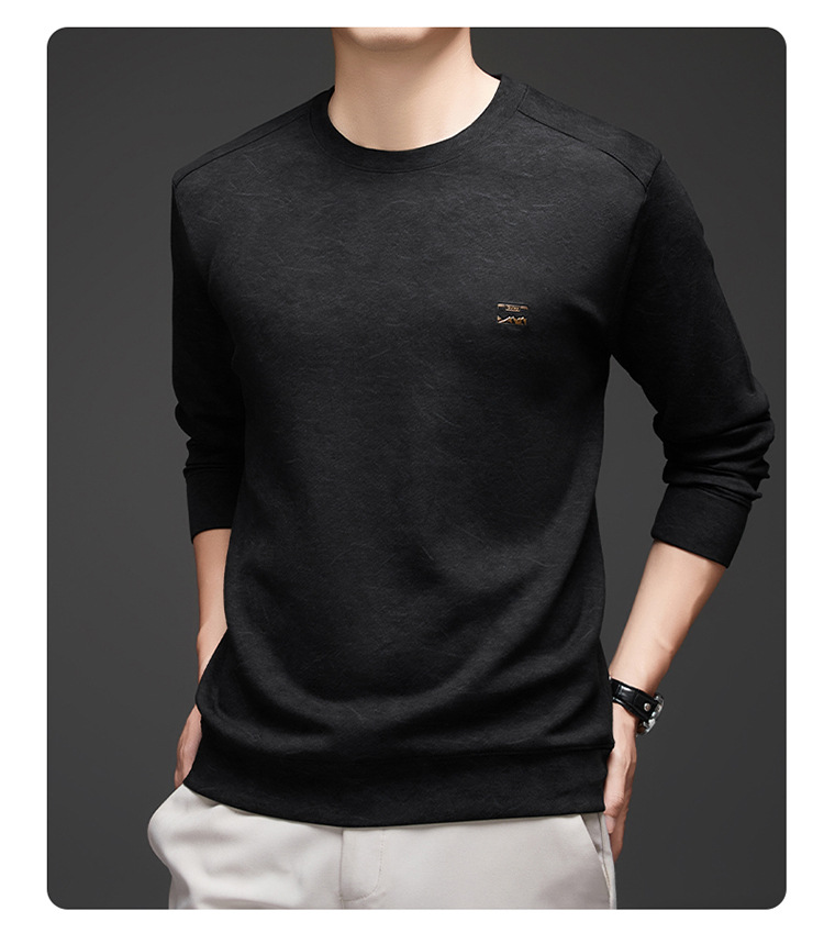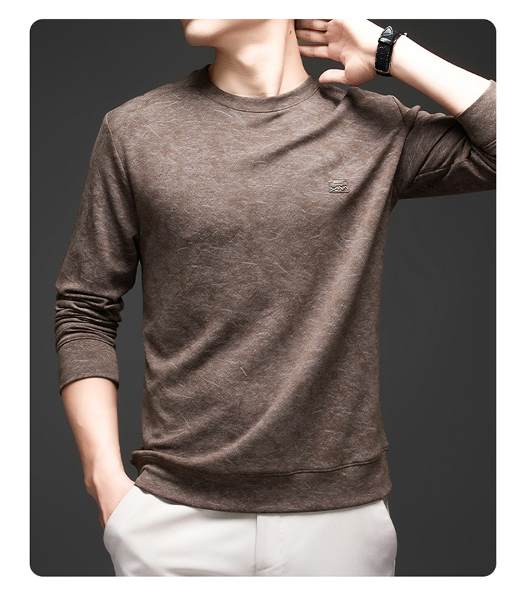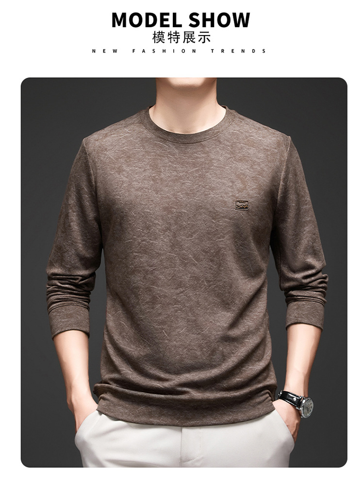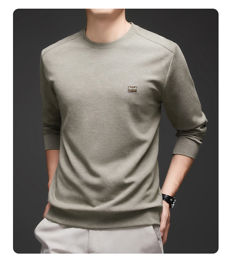 TikTok 라이브 방송 같은 가을과 겨울 새로운 남자 느슨한 와플 크루 넥 자수 기모 기지 긴 소매 티셔츠