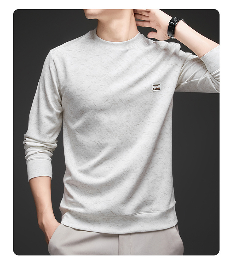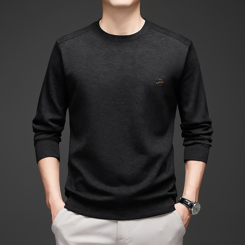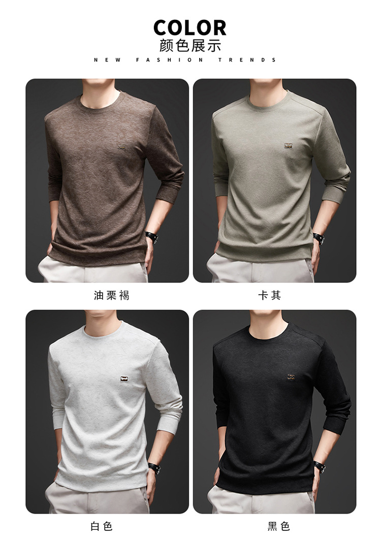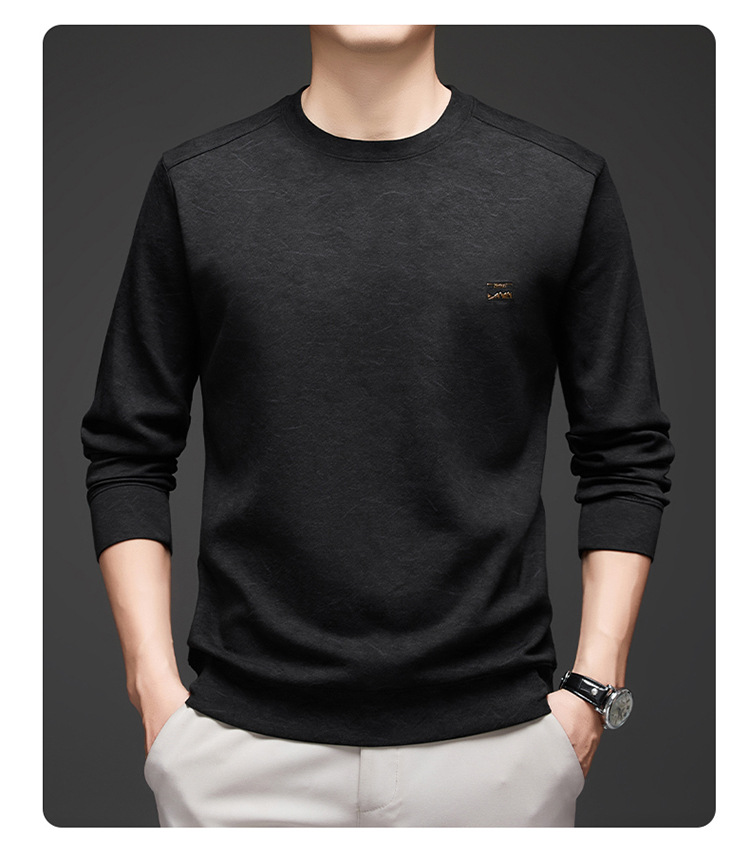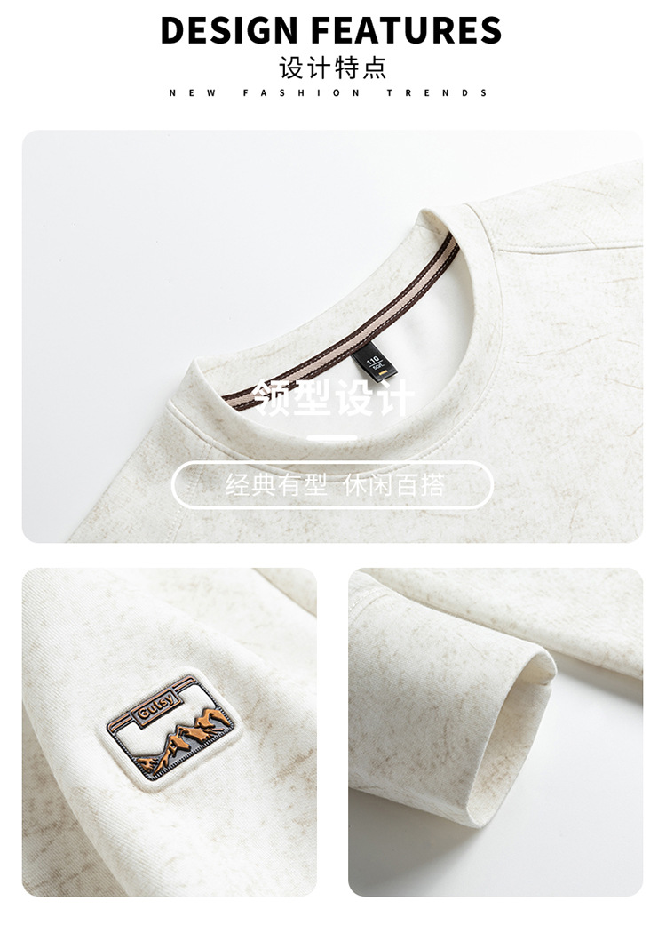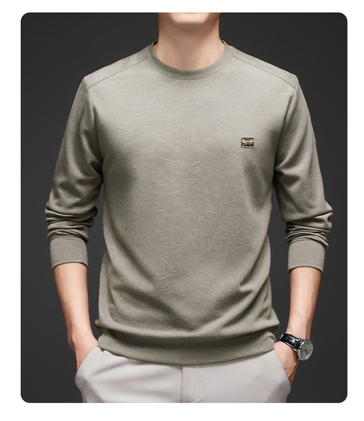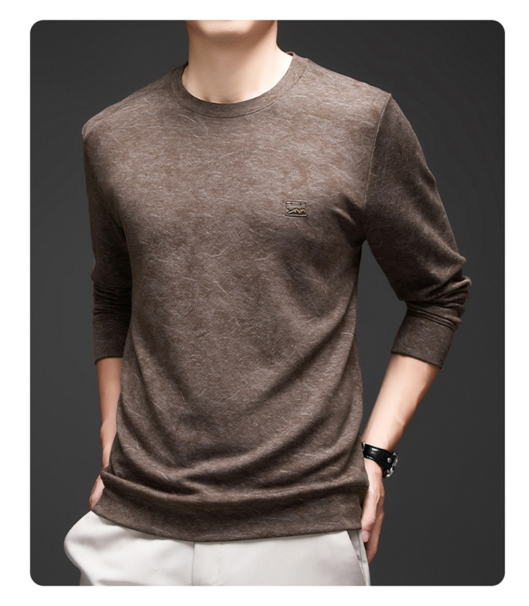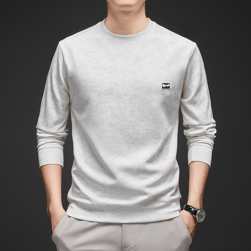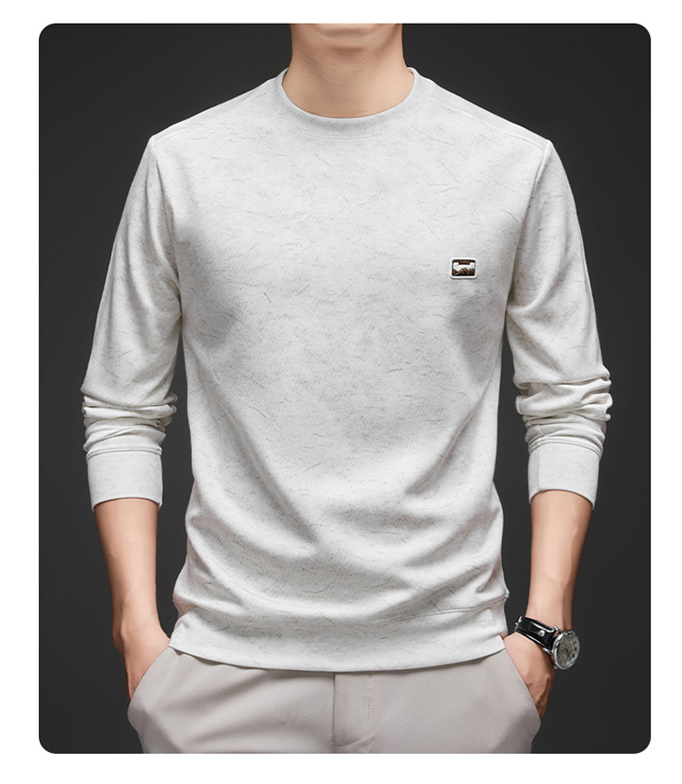 TikTok 라이브 방송 같은 가을과 겨울 새로운 남자 느슨한 와플 크루 넥 자수 기모 기지 긴 소매 티셔츠