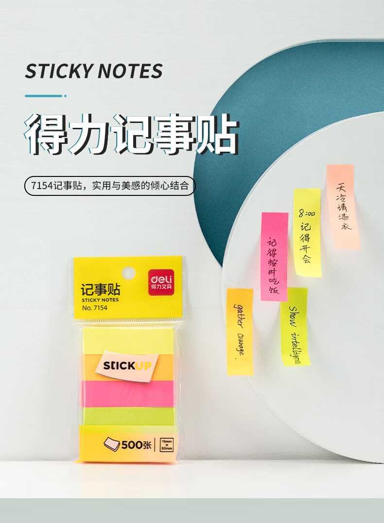델리 컬러 스티커 메모 7154 정품 스티커 메모 5 색 500 매/팩 게시물 스티커 도매