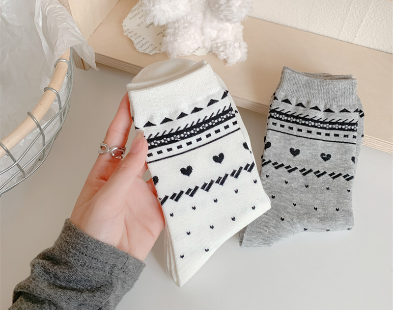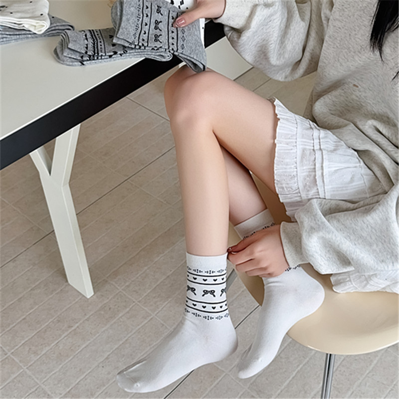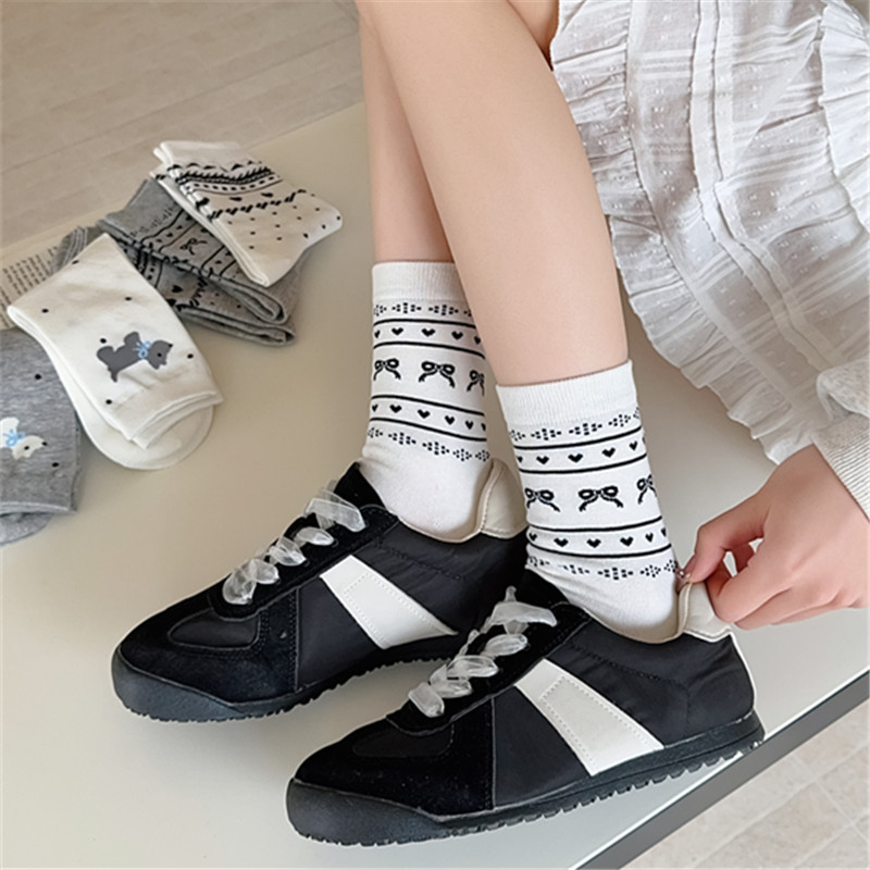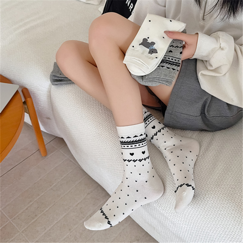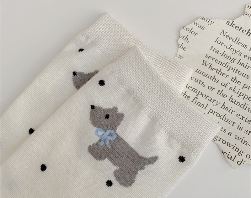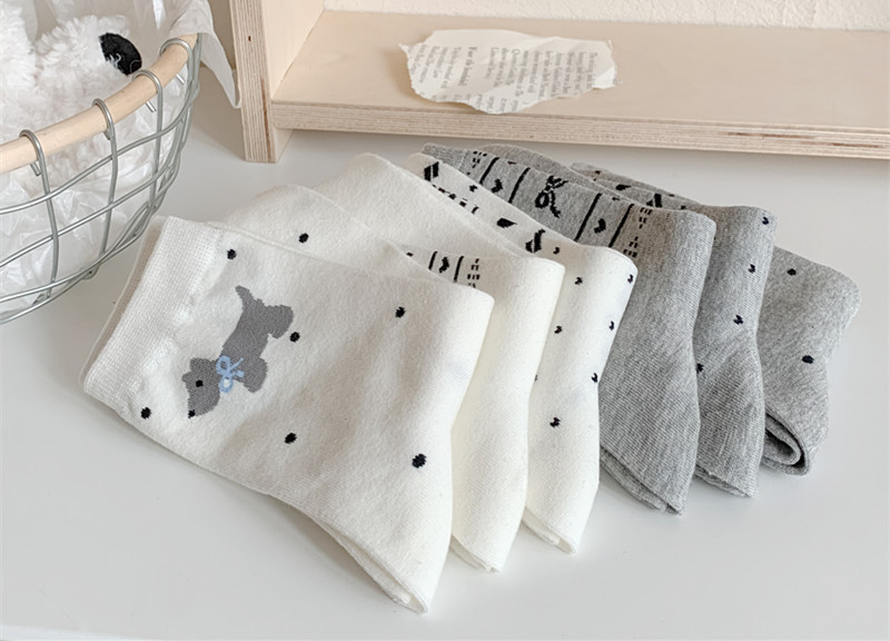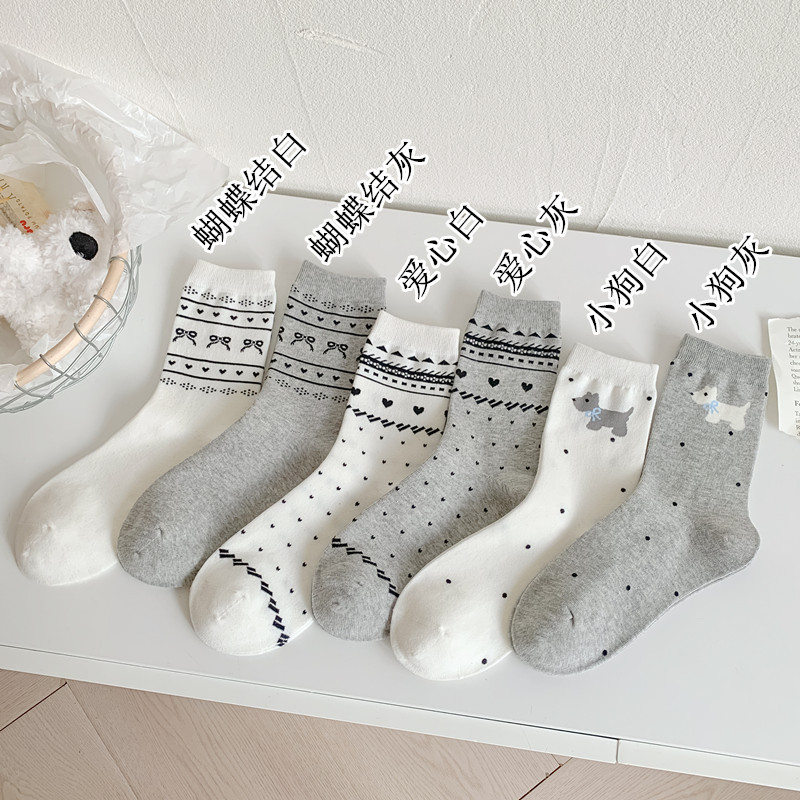 봄과 가을 여름 새로운 순면 양말 어린이 페어 아일랜드 강아지 중간 튜브 양말 일본 스타일 귀여운 흰색 회색 더미 양말스토어 가기