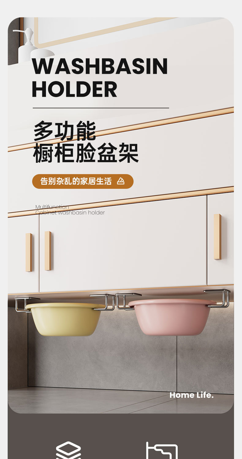 卫生间置物架洗脸盆收纳架子浴室免打孔壁挂式厕所放脸盆挂钩神器