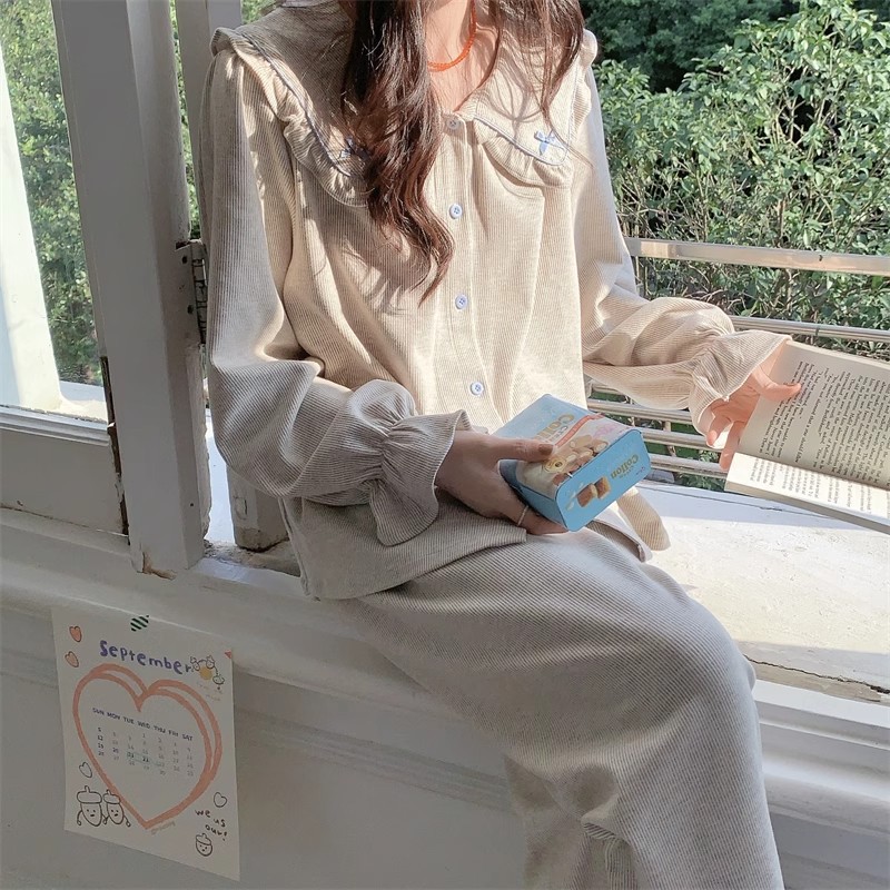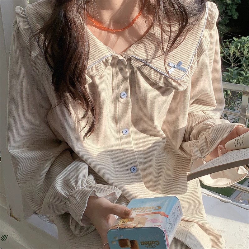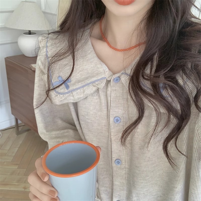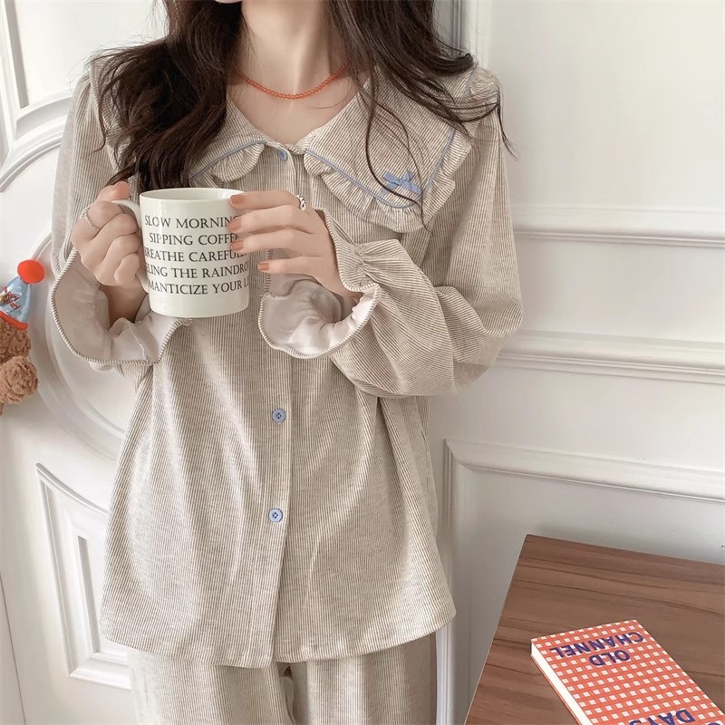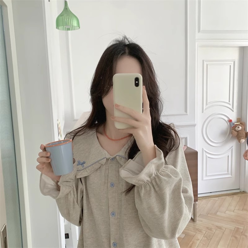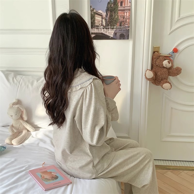 인즈 페어리 스타일 잠옷 여성의 봄과 가을 달콤하고 관대 한 단색 세트 얇은 한국 스타일 인형 칼라 홈 의류 여름스토어 가기