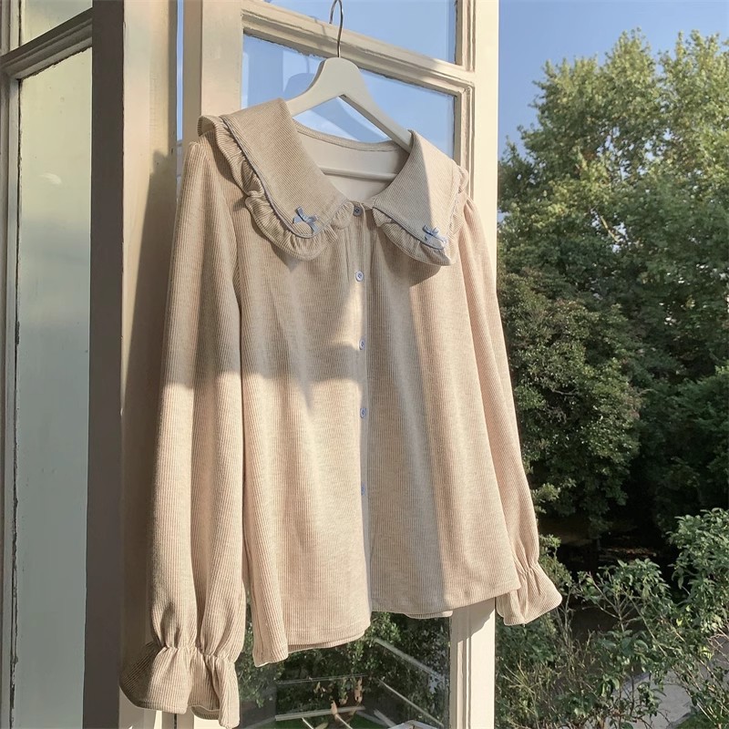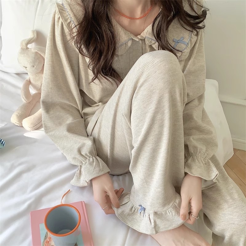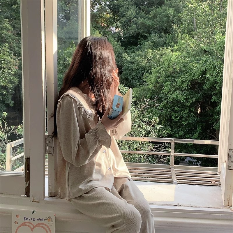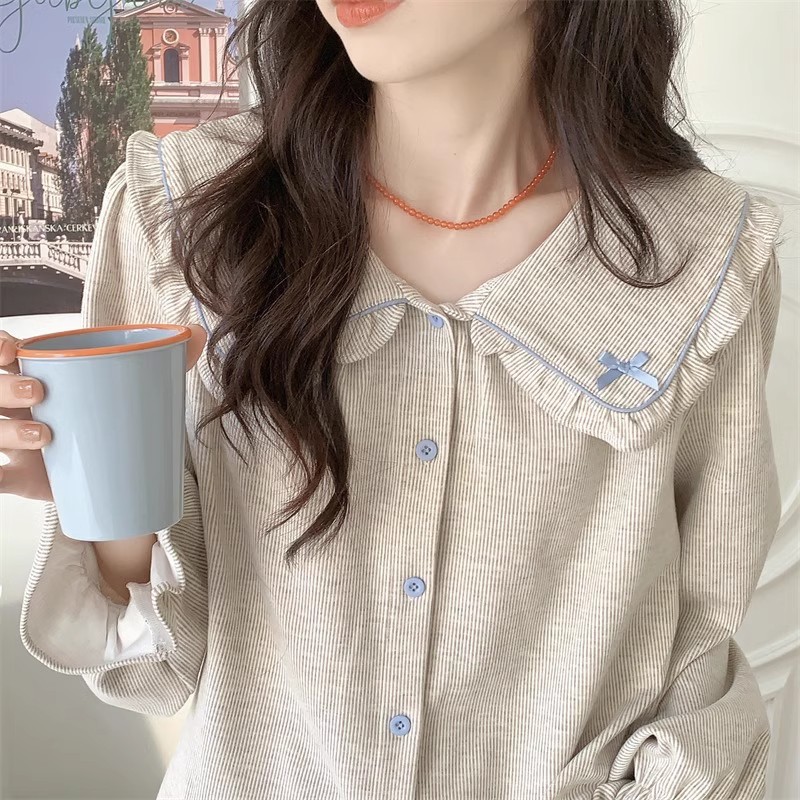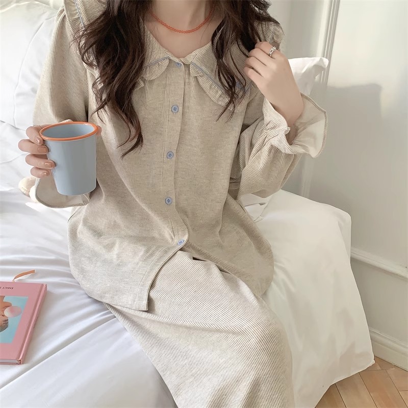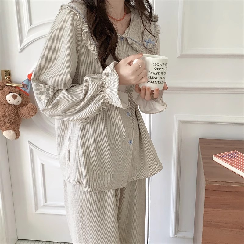 인즈 페어리 스타일 잠옷 여성의 봄과 가을 달콤하고 관대 한 단색 세트 얇은 한국 스타일 인형 칼라 홈 의류 여름스토어 가기