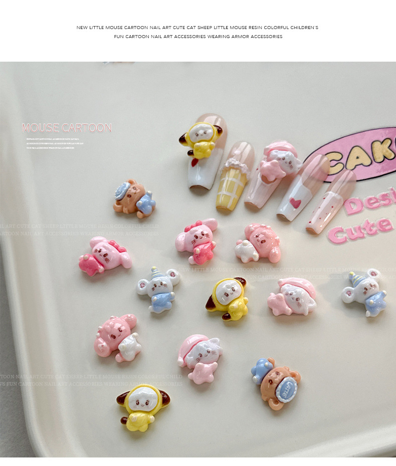 Mikko 만화 네일 아트 쥬얼리 2025 새로운 귀여운 쌀 웨어러블 네일 수지 다이아몬드 인터넷 축하 핫 액세서리