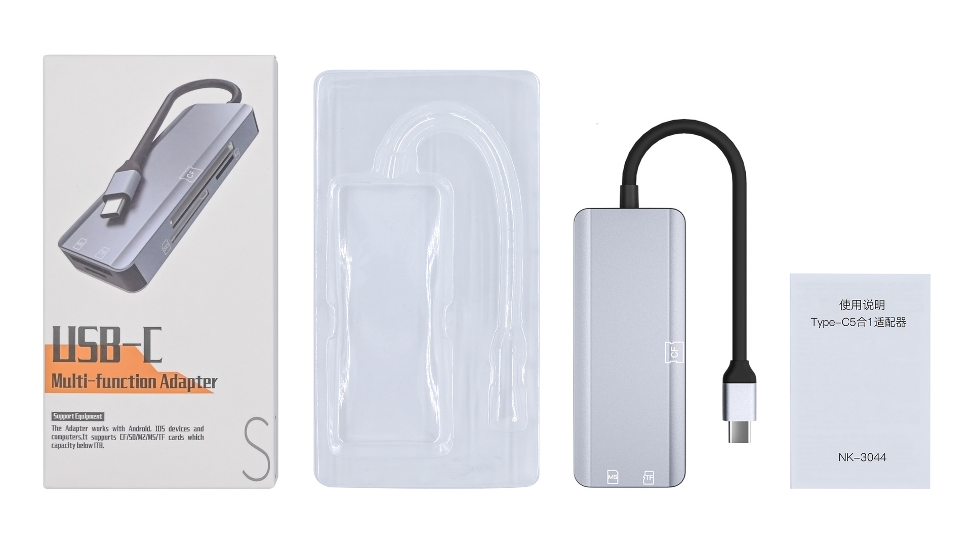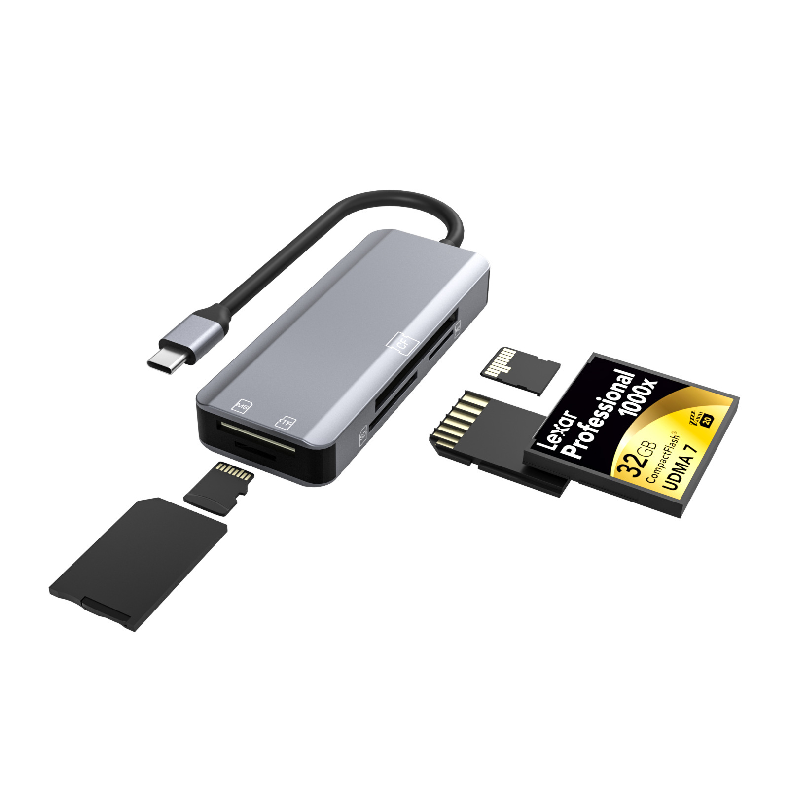 유형 c 다기능 카드 리더는 SD/TF/CF/MS 카드 고속 읽기 5 대 1 카메라 카드 리더기를 지원합니다.