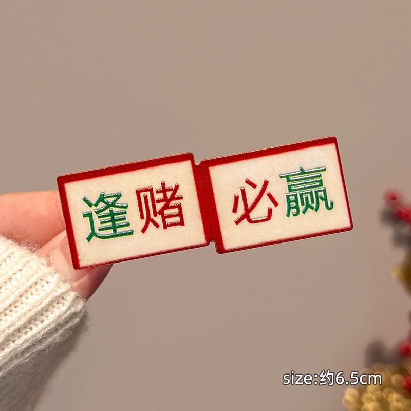 새해 마작 텍스트 성격 헤어핀 여성 사이드 뱅 덕빌 클립 헤드웨어 새해 헤어핀 2025 새로운스토어 가기