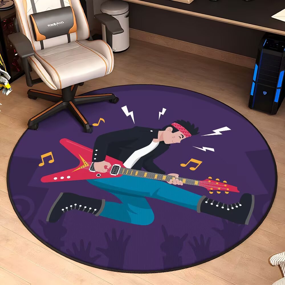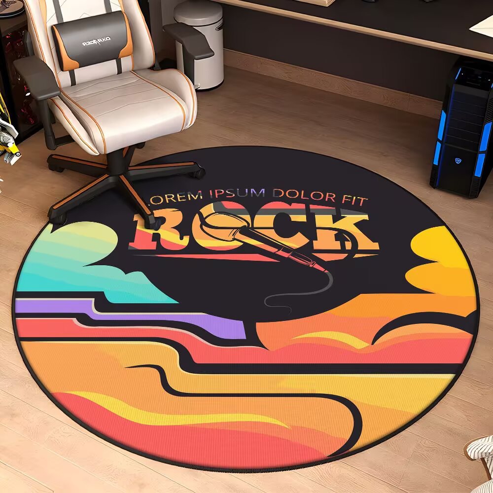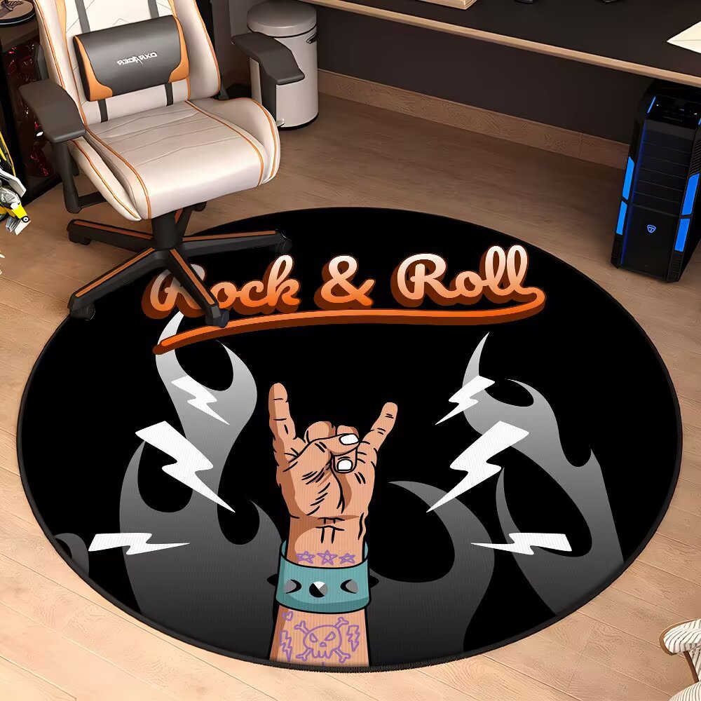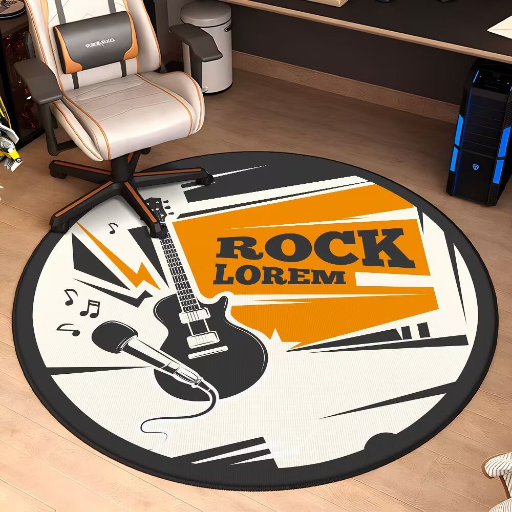 국경 간 전자 스포츠 라운드 카펫 침실 거실 더러운 저항 발 매트 컴퓨터 회전 의자 미끄럼 방지 록 음악 두꺼운 카펫스토어 가기
