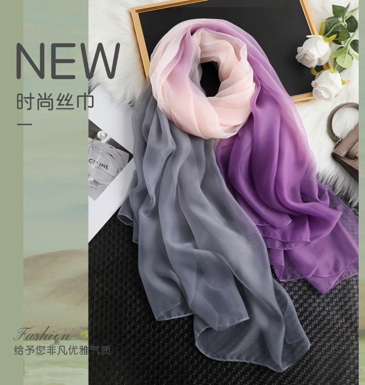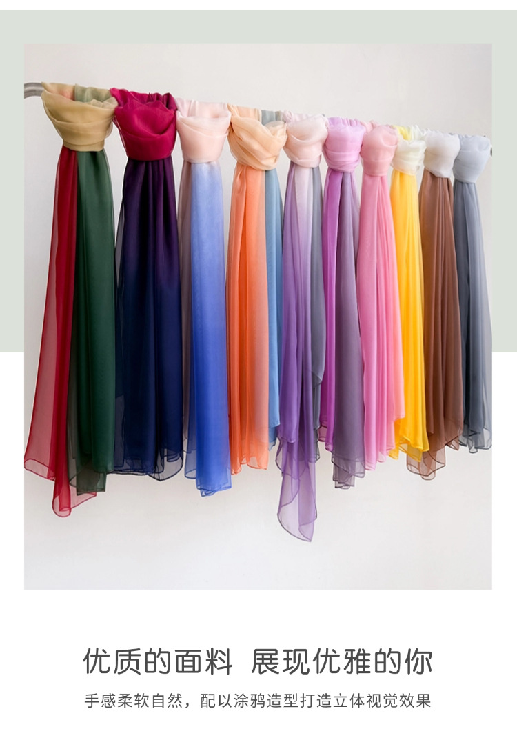 그라디언트 모조 실크 아이스 실크 스카프 우아한 올 매치 바디 에티켓 실크 스카프 새로운 스타일 댄스 스카프 긴 스카프스토어 가기