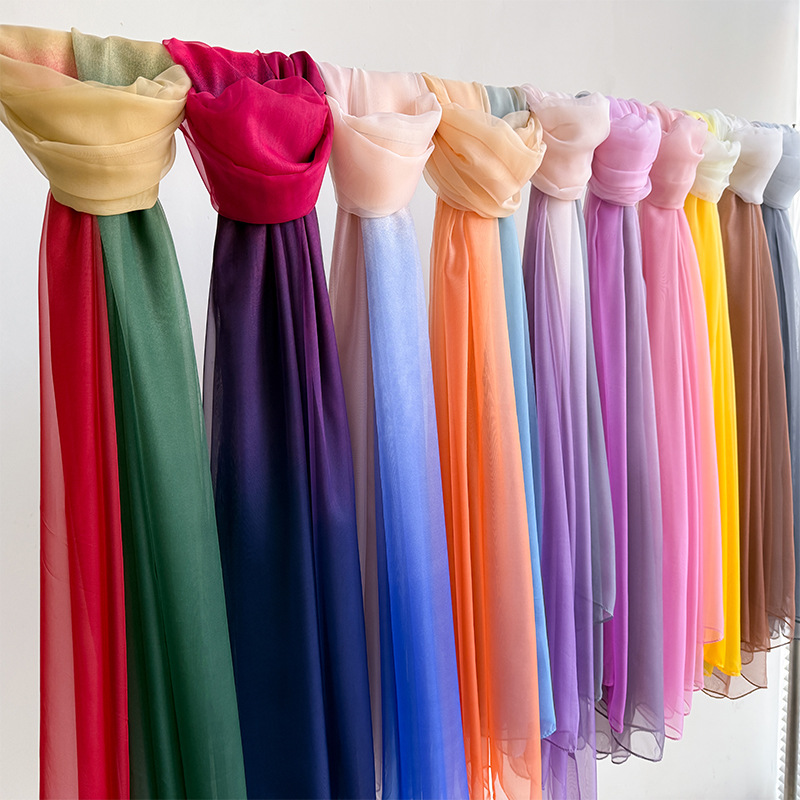 그라디언트 모조 실크 아이스 실크 스카프 우아한 올 매치 바디 에티켓 실크 스카프 새로운 스타일 댄스 스카프 긴 스카프