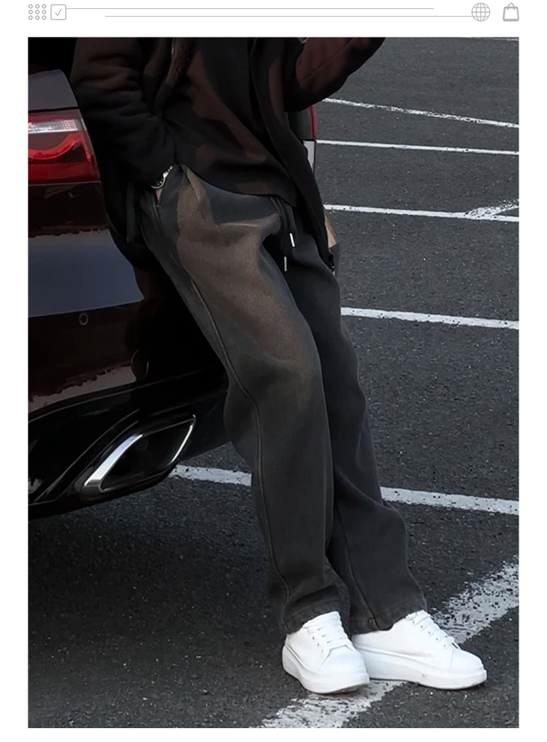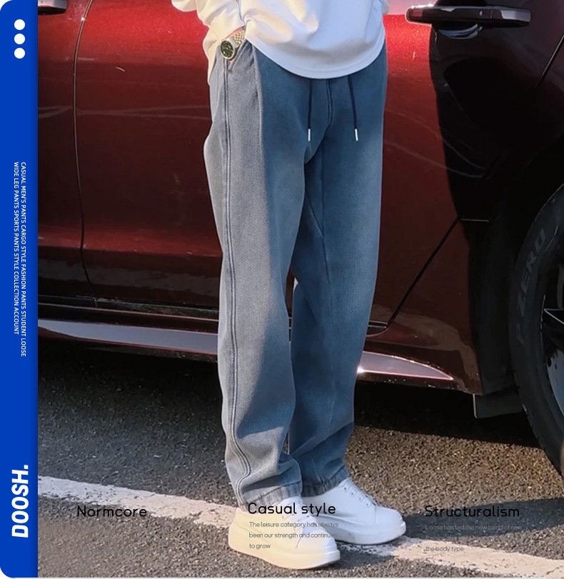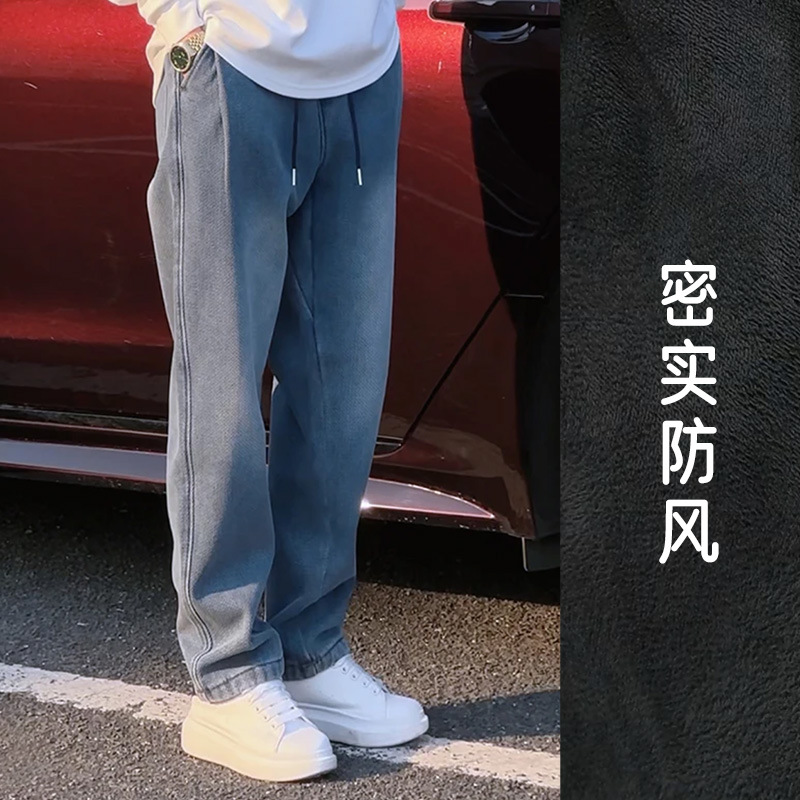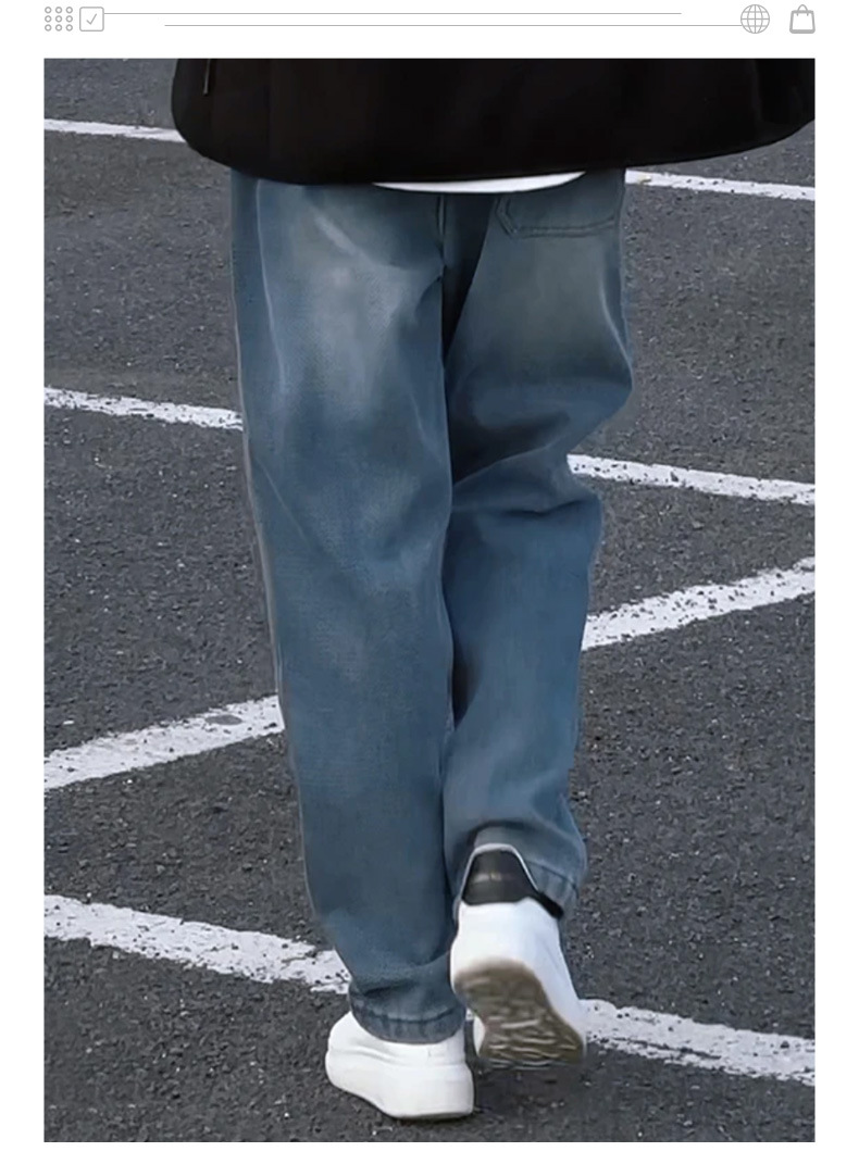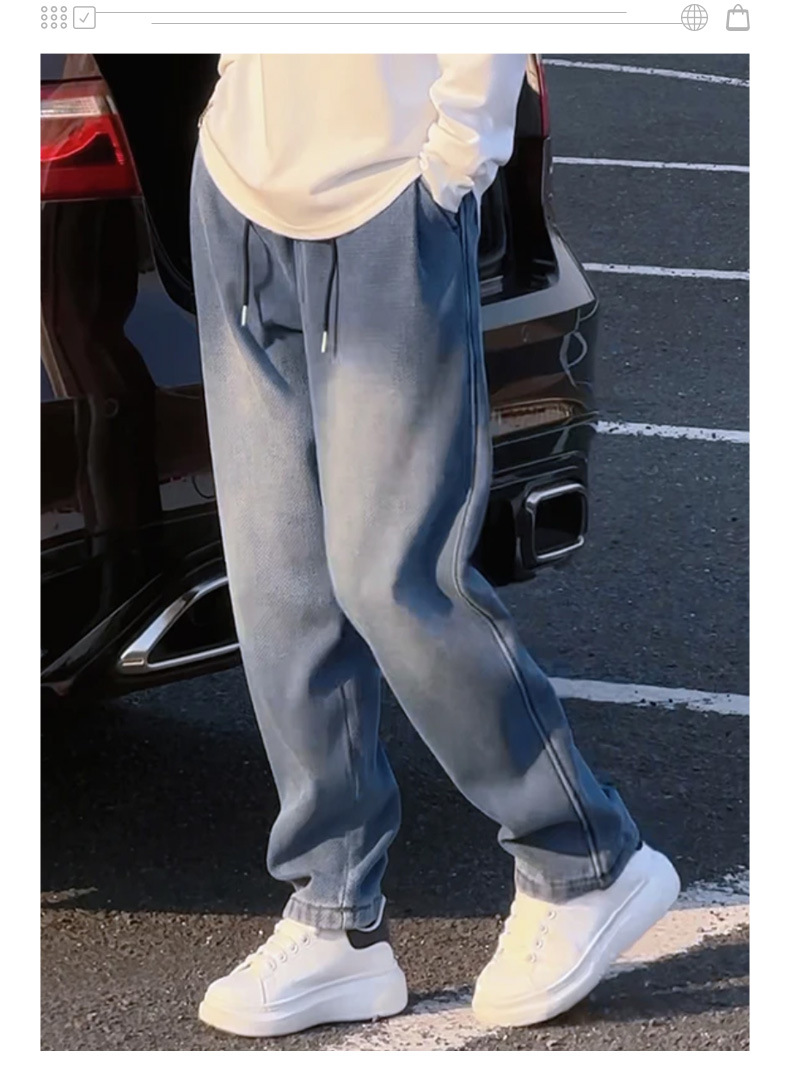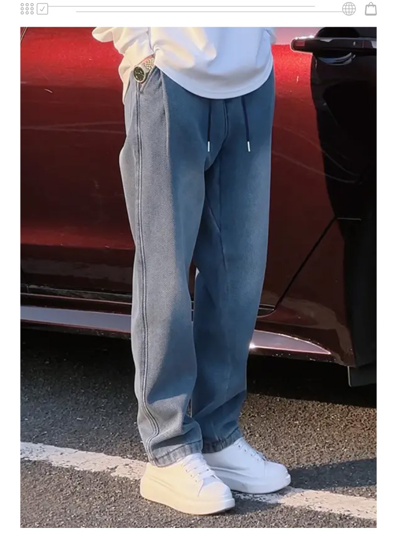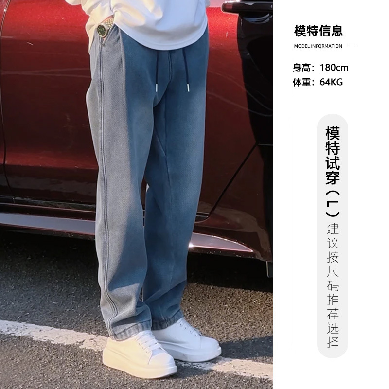 2025 새로운 가을 별이 빛나는 하늘 패턴 청바지 캐주얼 남성 느슨한 다목적 유행 대형 탄성 허리 스트레이트 바지스토어 가기