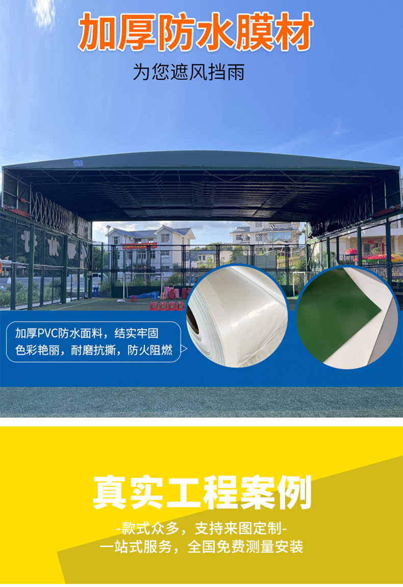 농구 코트 전기 푸시 풀 캐노피 레일 유형 개폐식 캐노피 통로 정지 활동 흘려 원격 제어 방수 차양