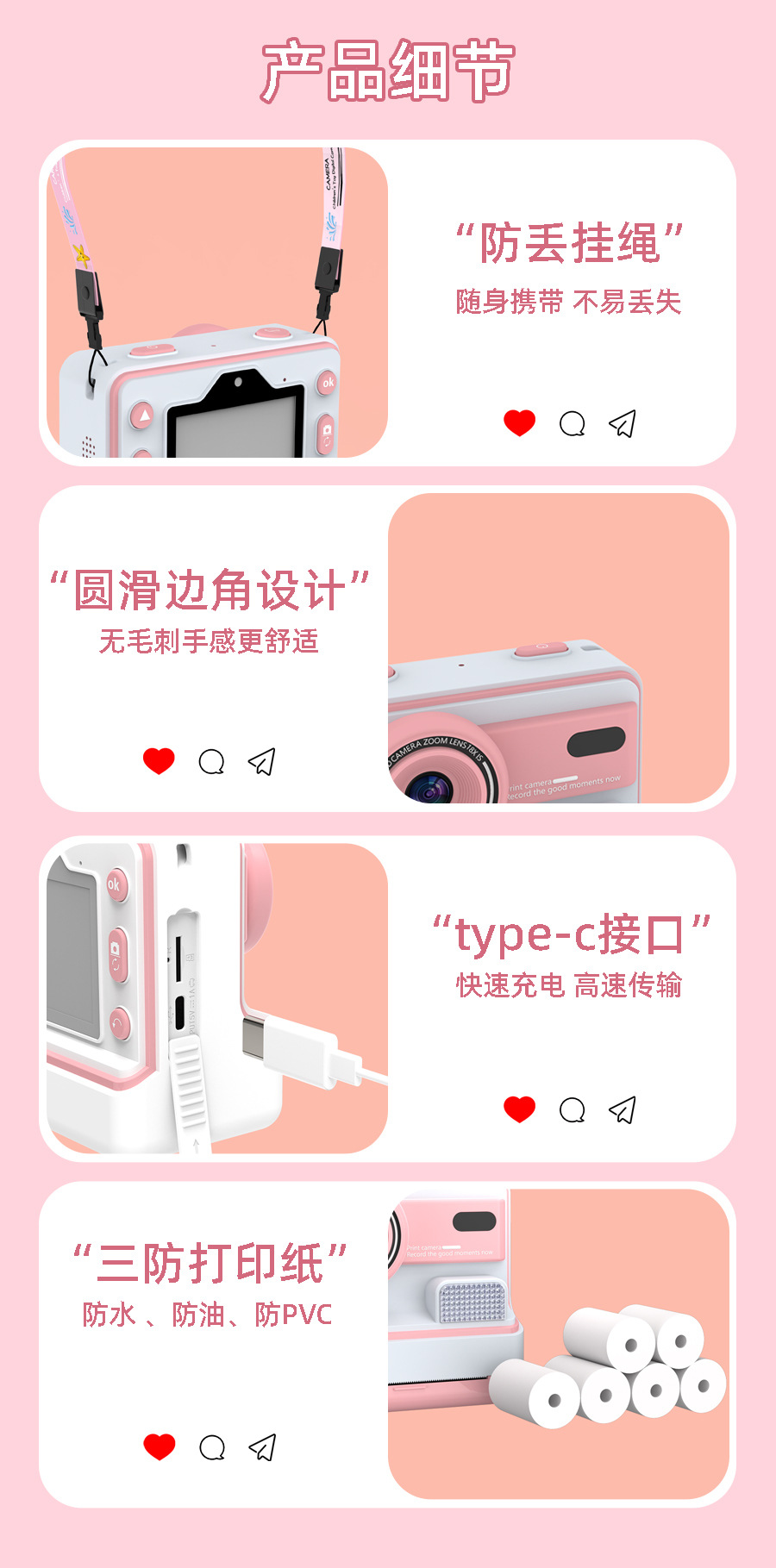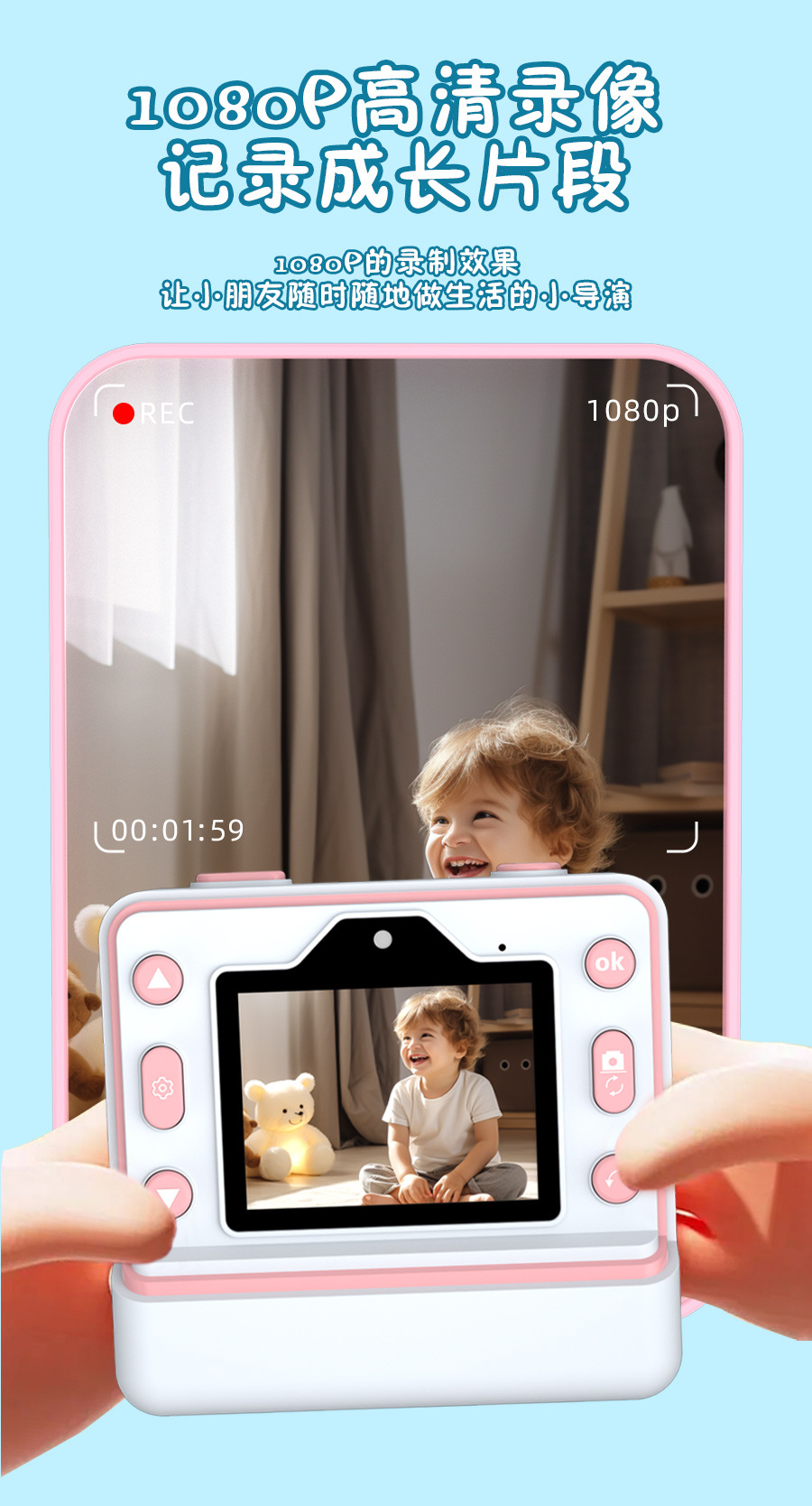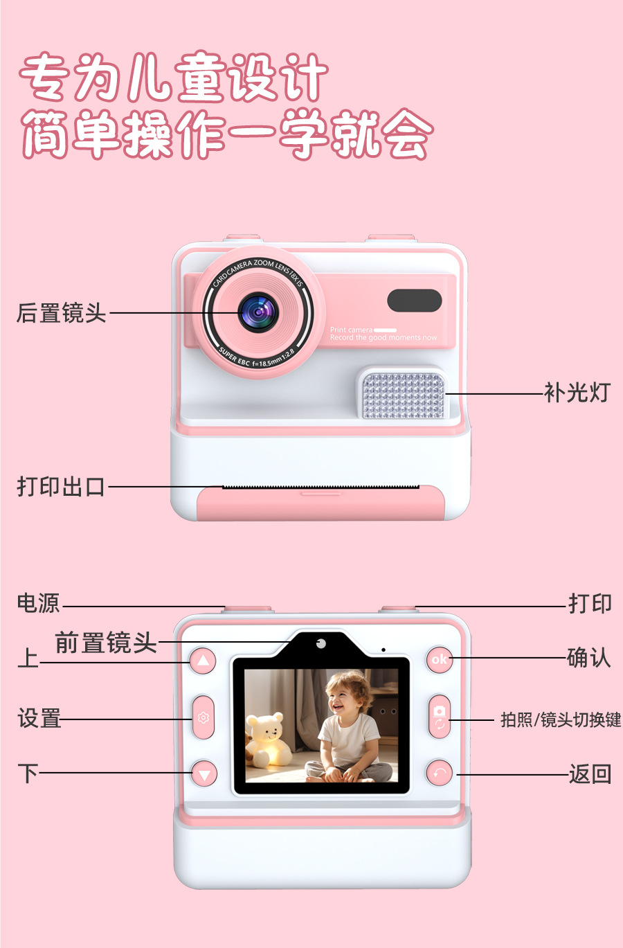 국경 간 새로운 폴라로이드 컬러 인쇄 고화질 열 감지 어린이 디지털 카메라 미니 일회용 이미징 2.4inch스토어 가기