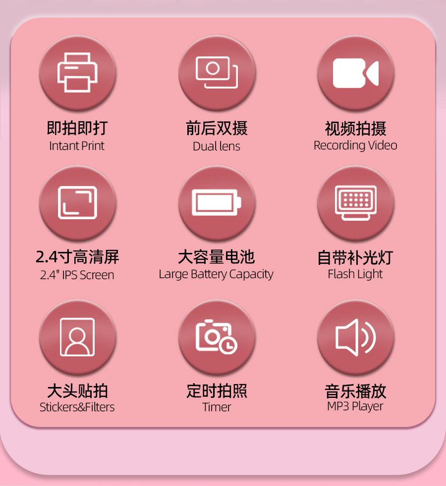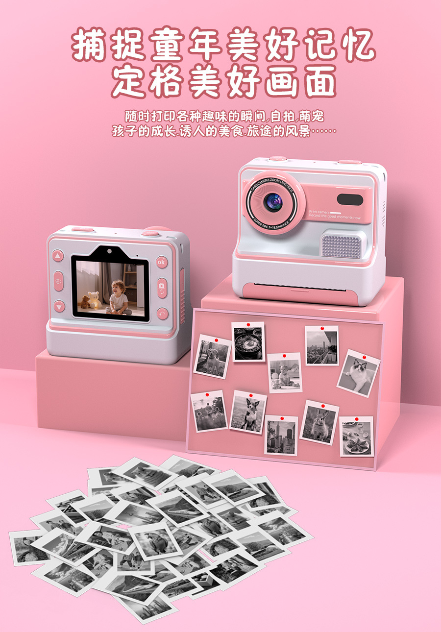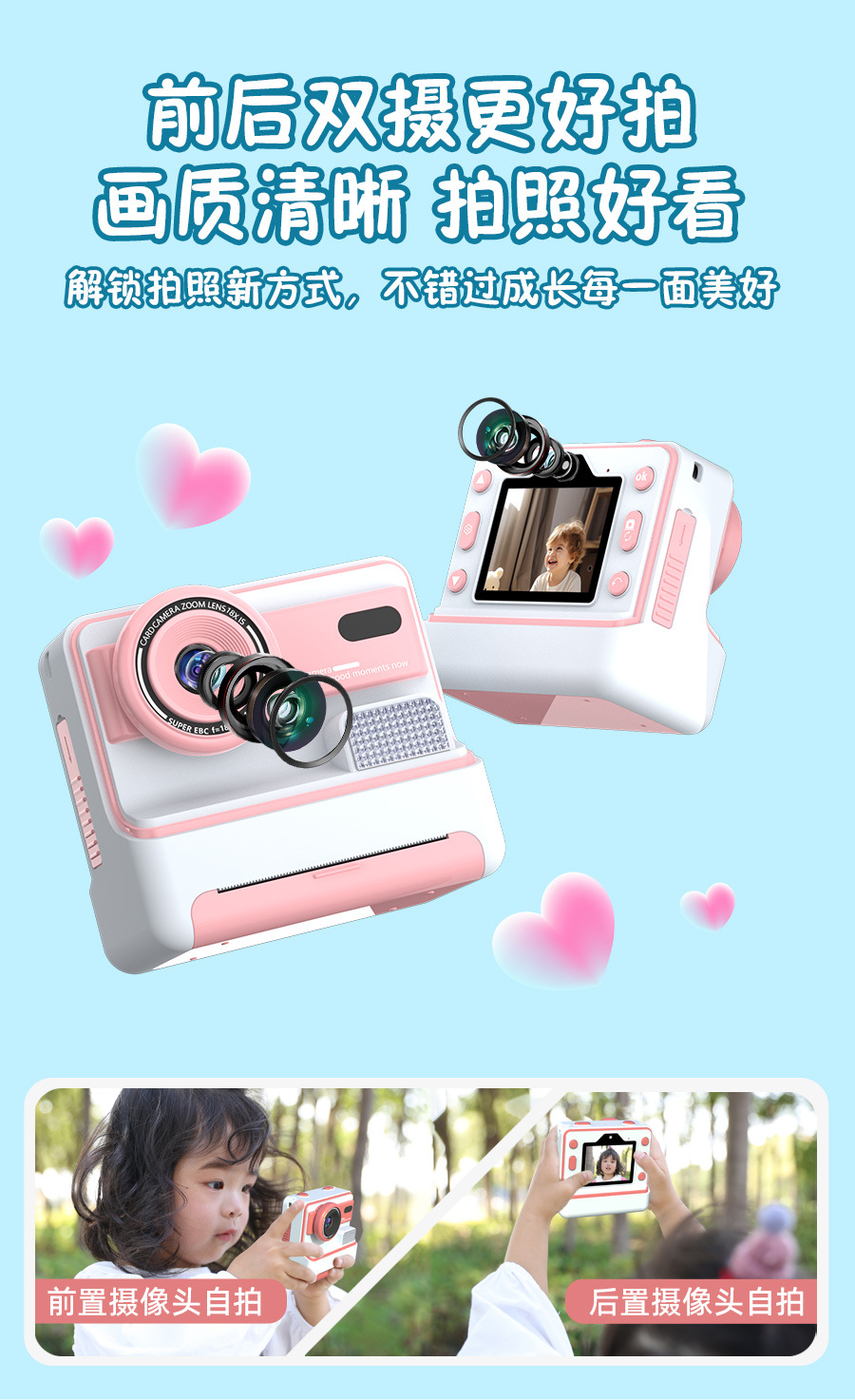 국경 간 새로운 폴라로이드 컬러 인쇄 고화질 열 감지 어린이 디지털 카메라 미니 일회용 이미징 2.4inch