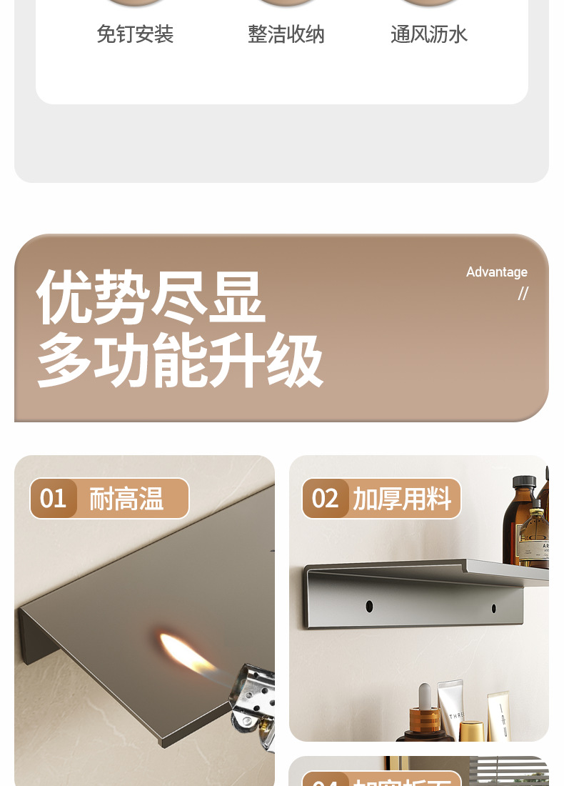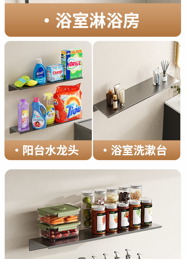 욕실 보관 랙 1 라인 보드 벽 교수형 보관 랙 욕실 선반 거실 주방 및 욕실 스터디 무료 펀치