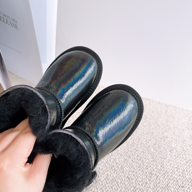방수 어린이 스노우 부츠, 가죽과 모피 일체형, 부모-자녀용, 남녀공용, 낮은 굽, 미끄럼 방지, 보온 및 두꺼운 안감스토어 가기