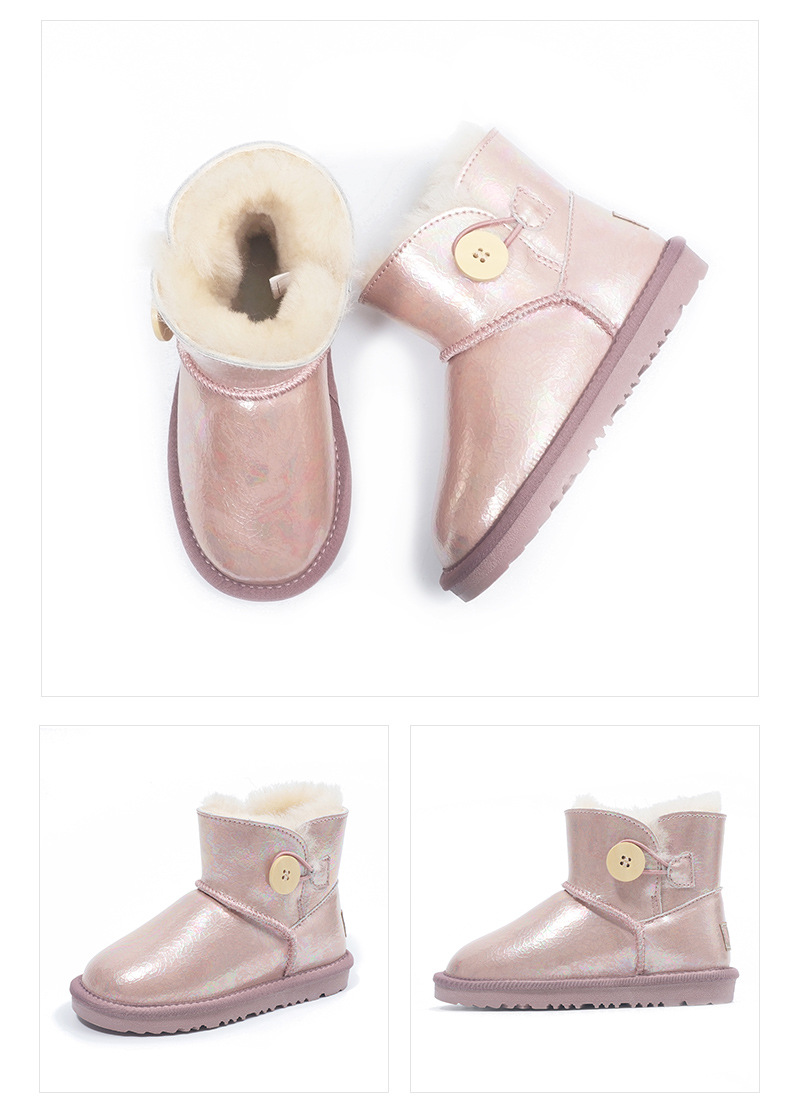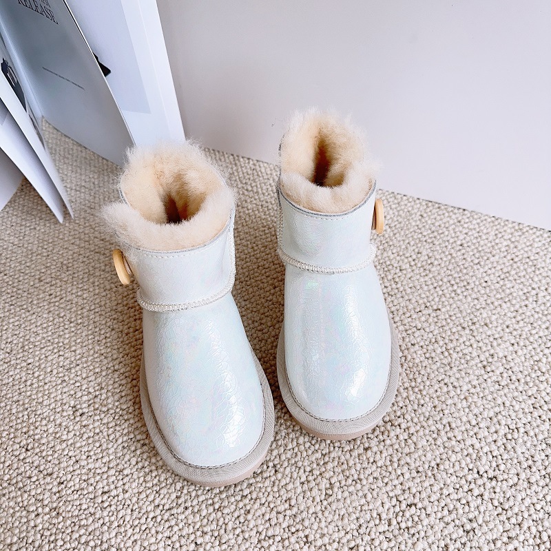 방수 어린이 스노우 부츠, 가죽과 모피 일체형, 부모-자녀용, 남녀공용, 낮은 굽, 미끄럼 방지, 보온 및 두꺼운 안감