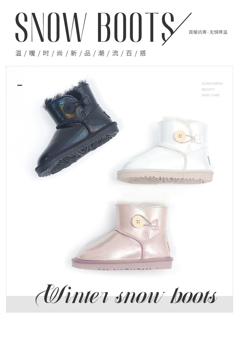饱满鞋型让脚享受头等舱的舒适感 便捷开合 宝宝自如穿脱科学软底 助力发育 亲肌内里 舒适脚丫 够厚密畅玩雪地才够暖。