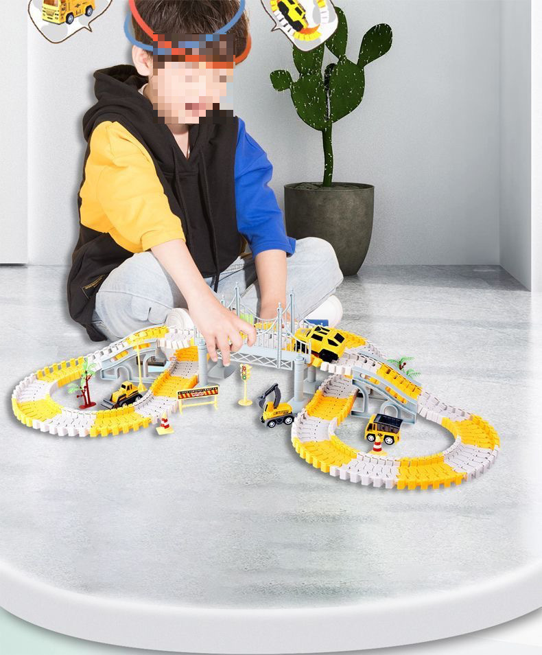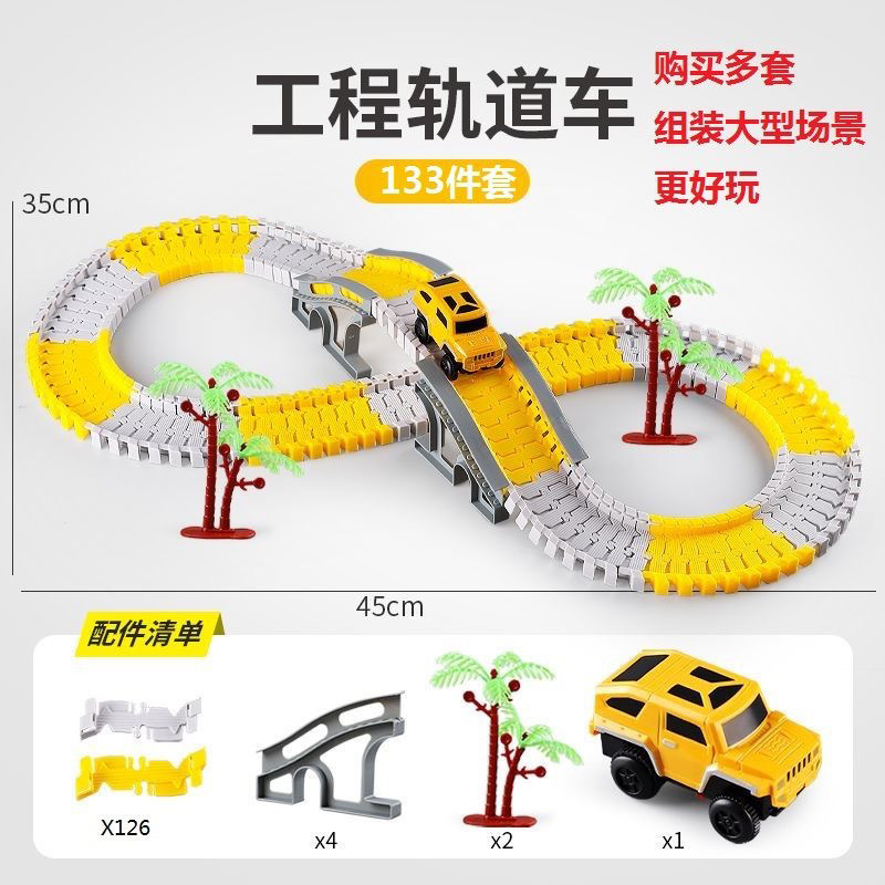 百变工程轨道车儿童组合拼装小火车赛车男孩汽车套装玩具