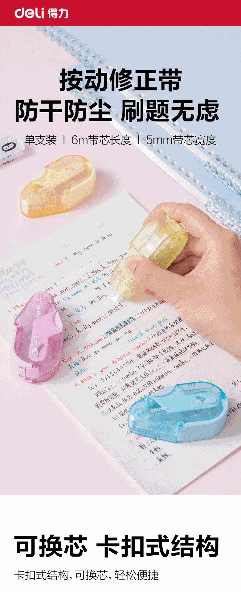 델리 문구 투명 푸시 보정 테이프 XO5 보정 테이프 교체 코어 보정 테이프 학생 보정 테이프스토어 가기