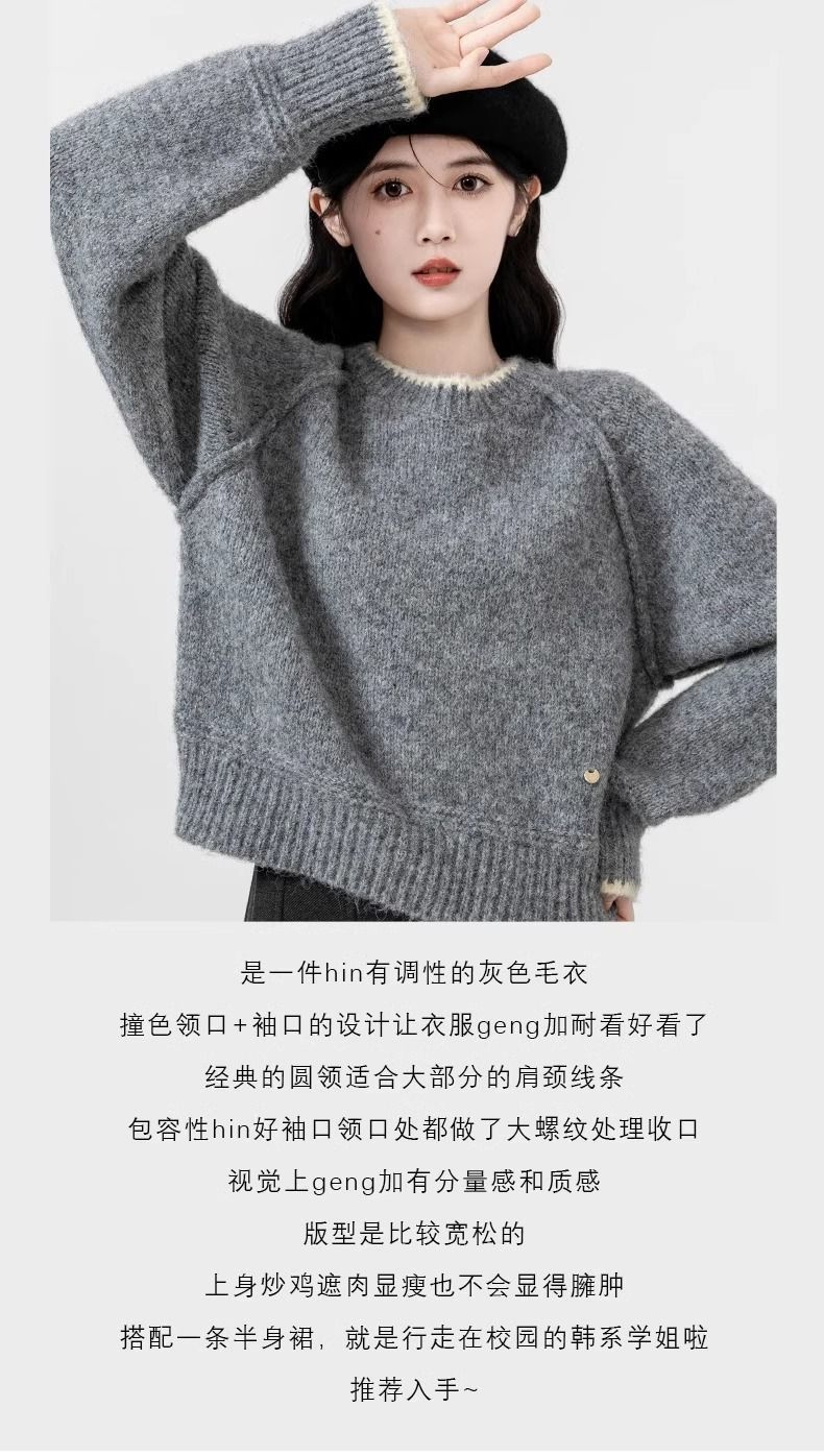 고양이 연 가을 겨울 100 순수 산 캐시미어 스웨터 여성 크루 넥 느슨한 카디건 따뜻한 고급 니트 베이스 셔츠스토어 가기