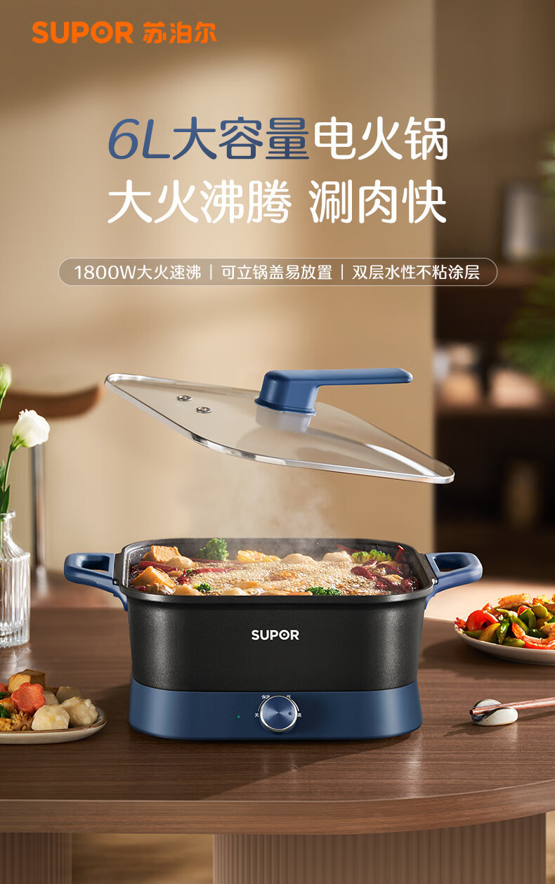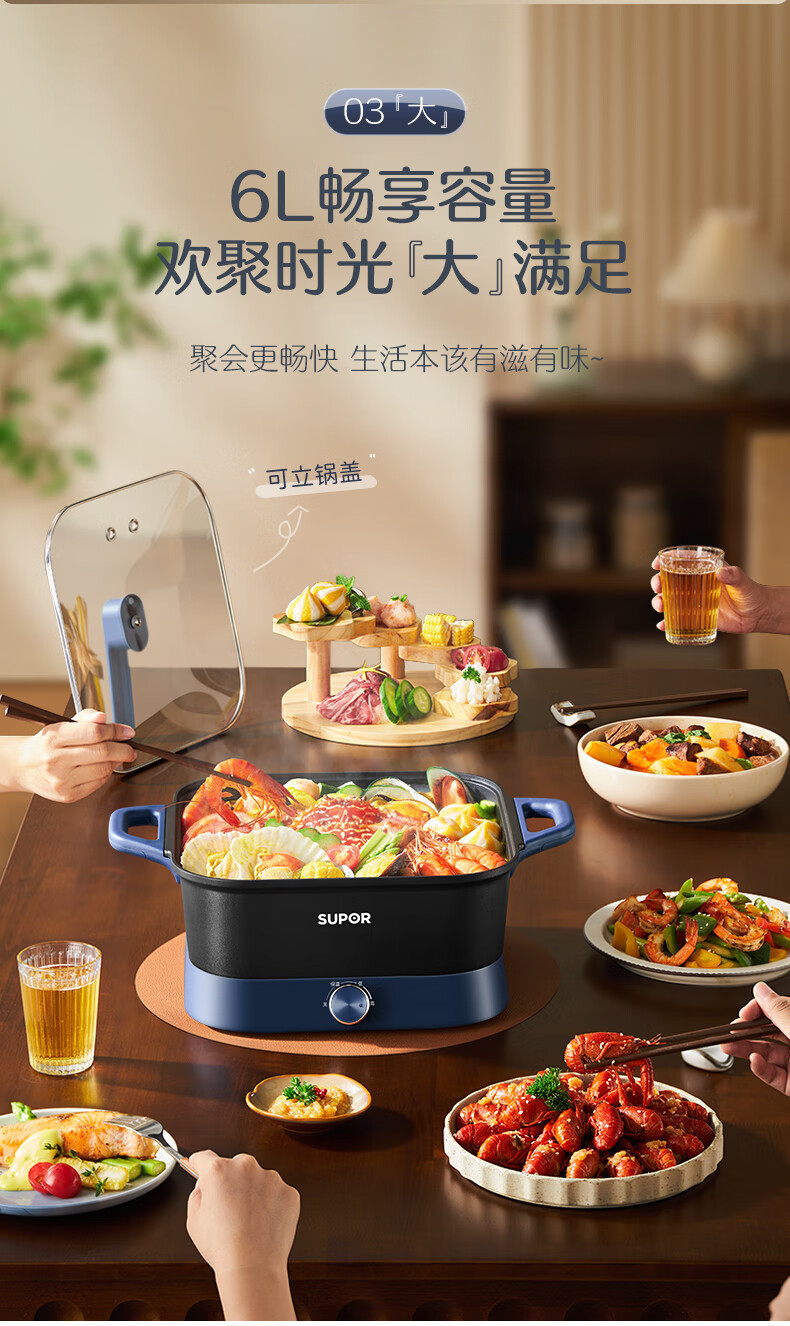 Supor 전기 냄비 전기 요리 냄비 가정용 냄비 전기 냄비 올인원 다기능 냄비 냄비 6L 전기 냄비스토어 가기