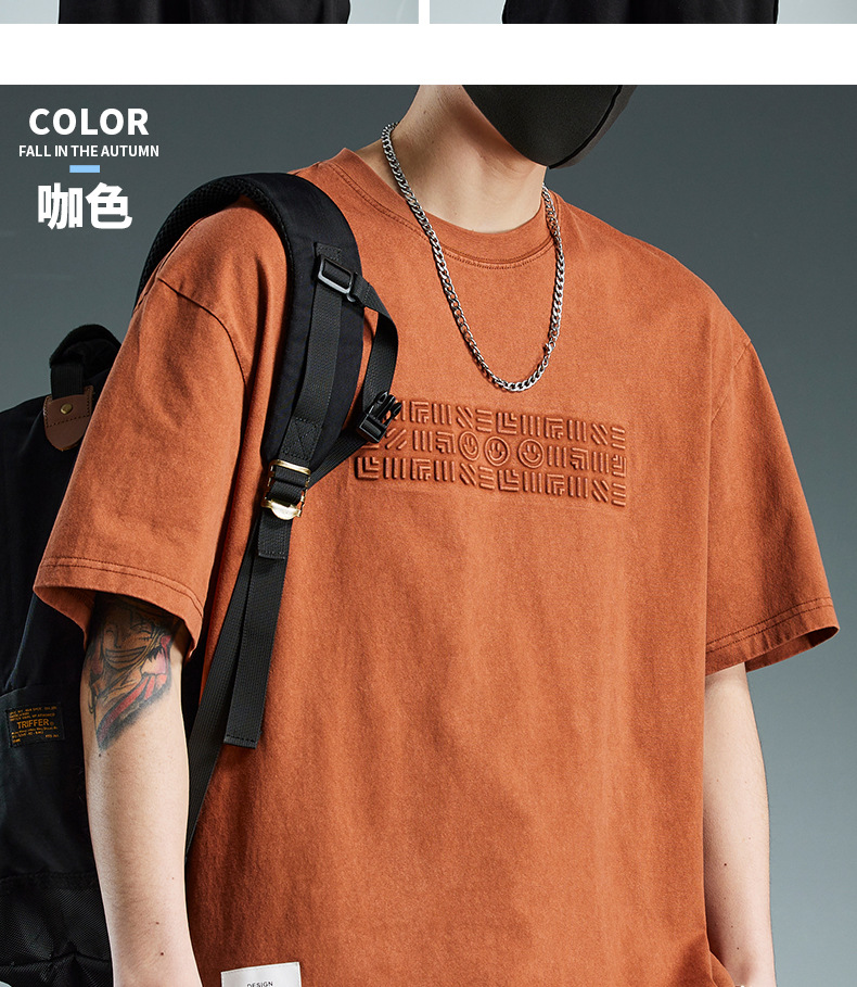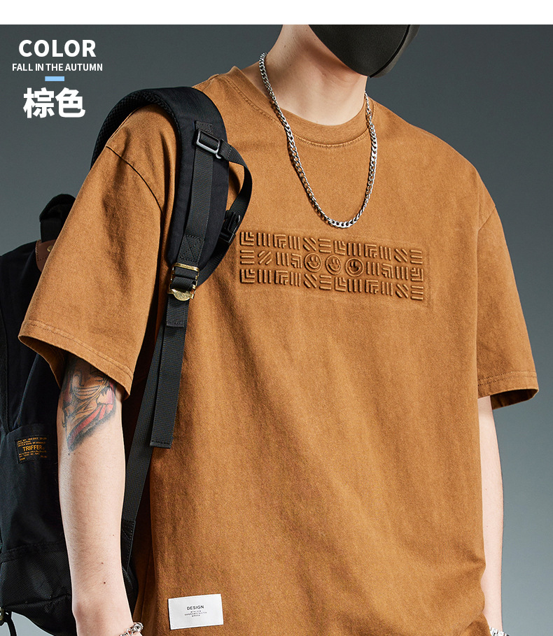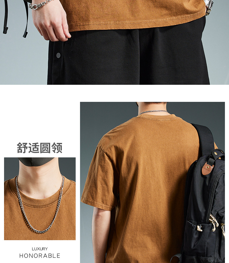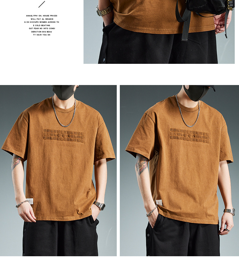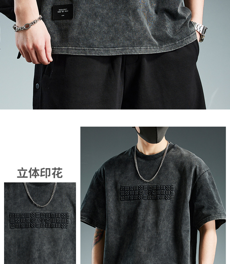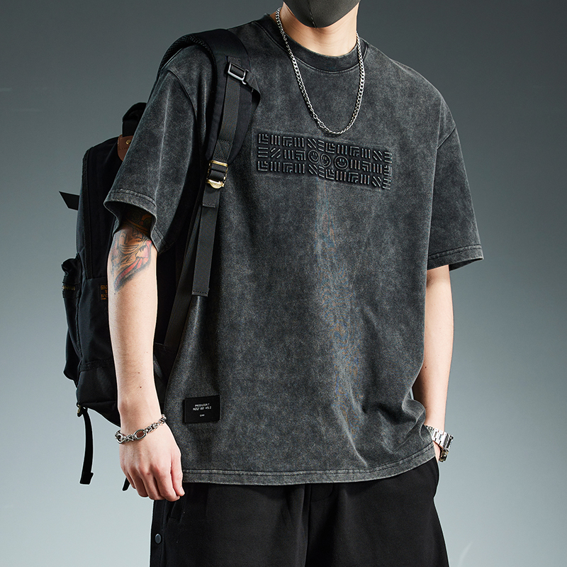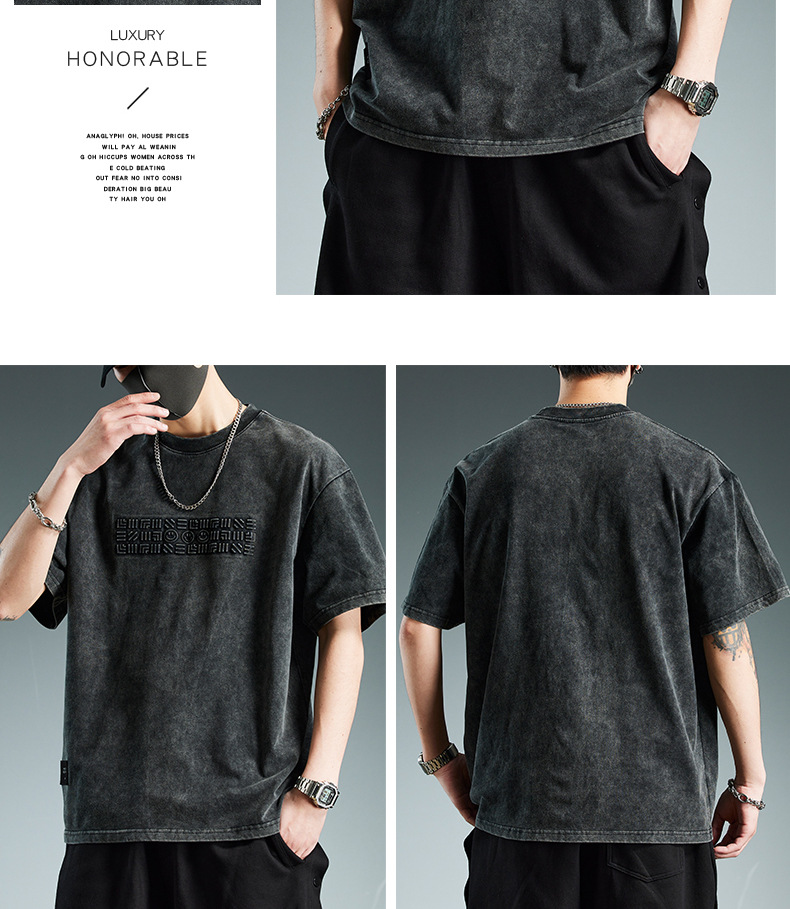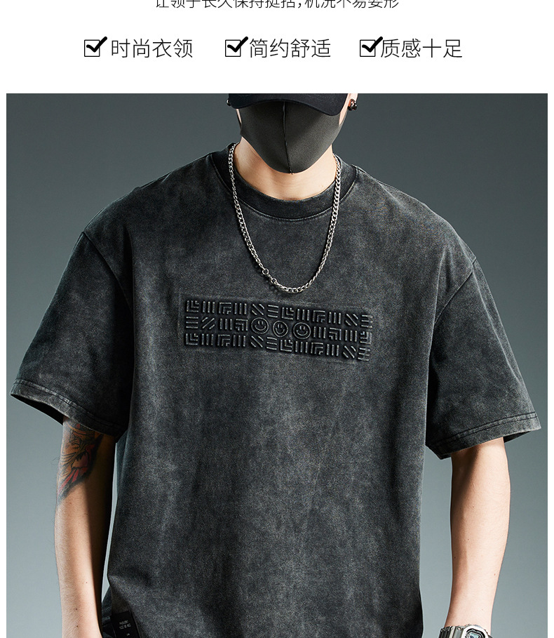 트렌디한 루즈핏 활용도 높은 헤비웨이트 반팔 티셔츠 남성 여름 2026 신상 워싱 티셔츠 상의 트렌디 브랜드 남성복