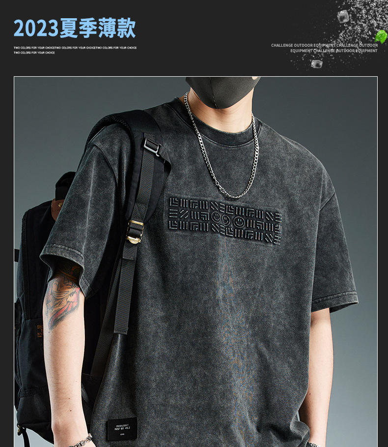트렌디한 루즈핏 활용도 높은 헤비웨이트 반팔 티셔츠 남성 여름 2026 신상 워싱 티셔츠 상의 트렌디 브랜드 남성복스토어 가기