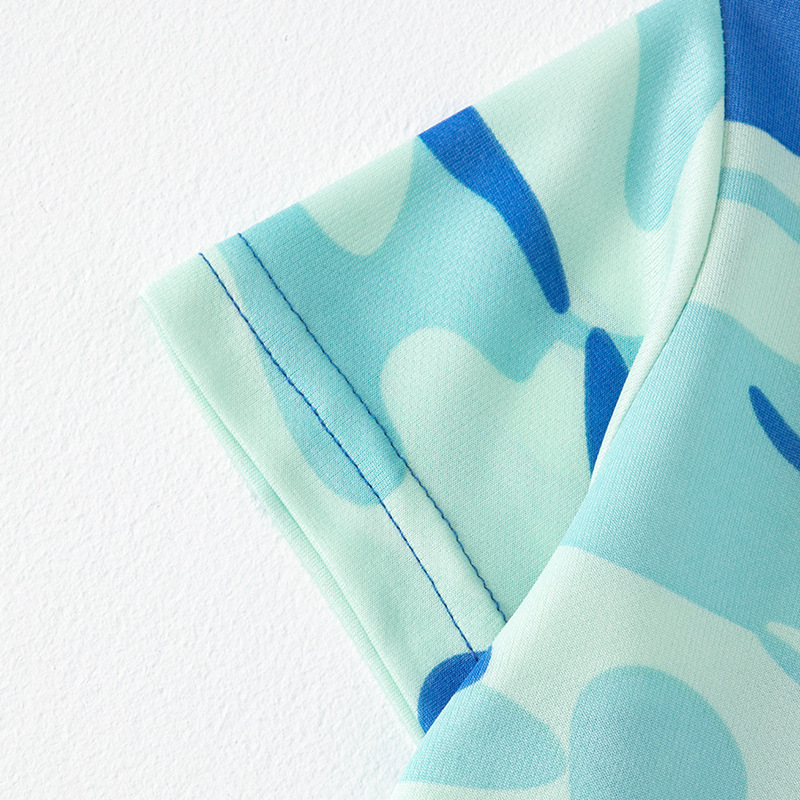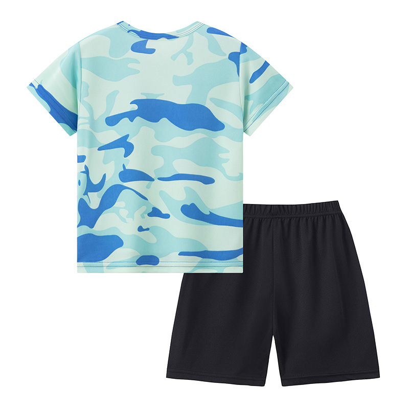 해외 국경 간 대외 무역 어린이 빠른 건조 스포츠 세트 위장 반팔 검은 바지 폭발성 패션 소년 소녀를위한 빠른 건조 옷스토어 가기