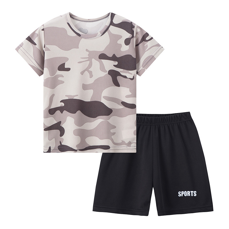 해외 국경 간 대외 무역 어린이 빠른 건조 스포츠 세트 위장 반팔 검은 바지 폭발성 패션 소년 소녀를위한 빠른 건조 옷