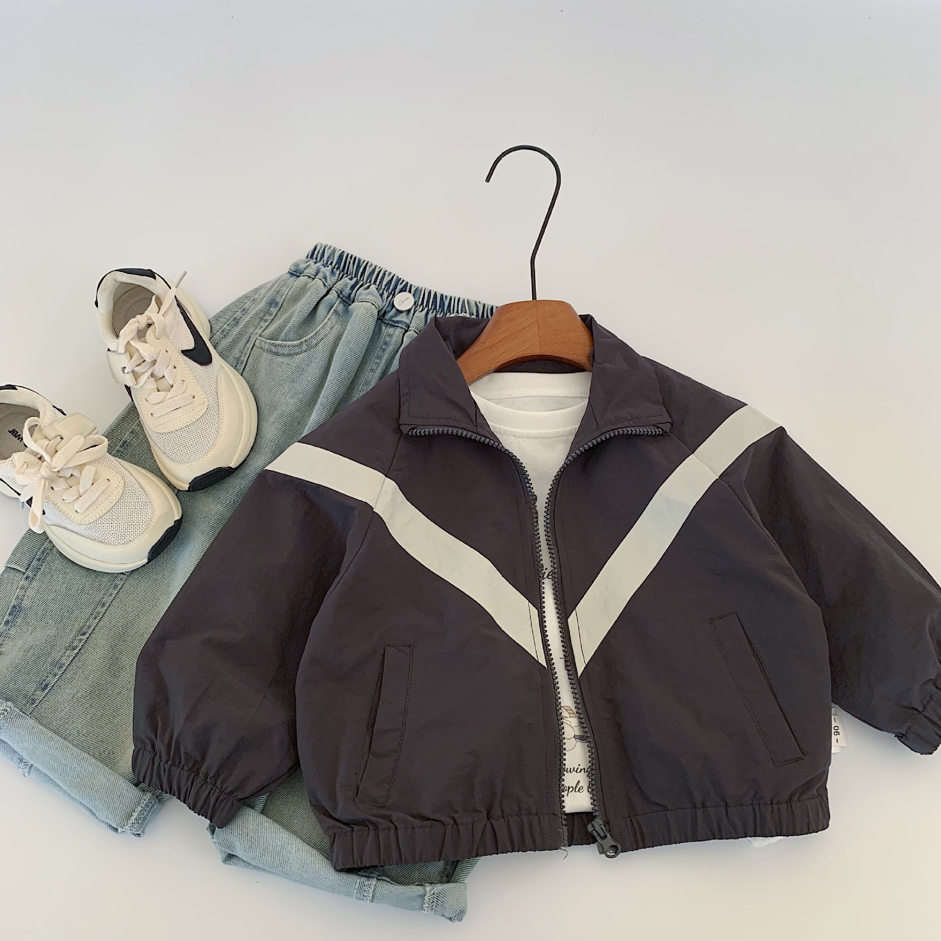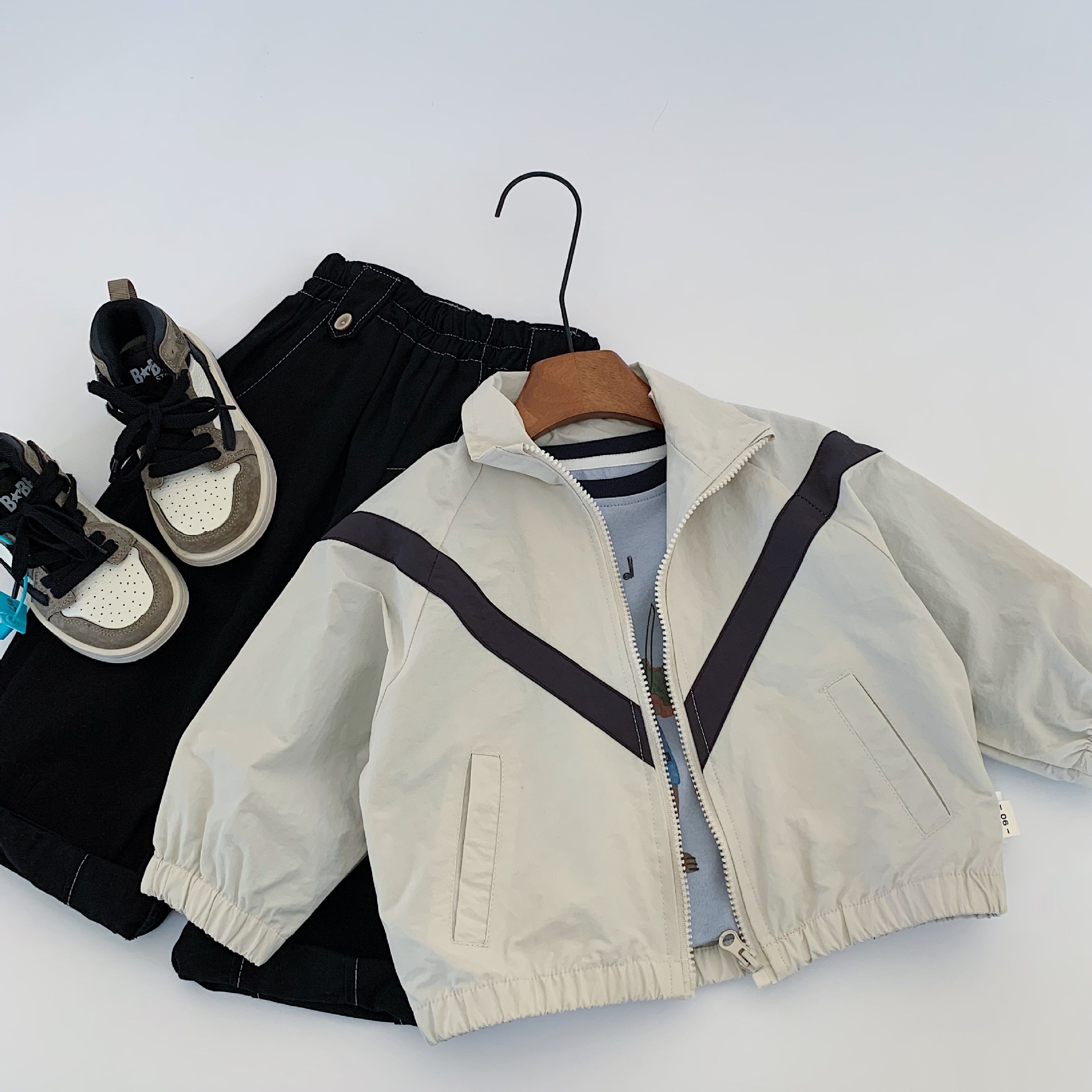 Maibao 아동용 재킷 2025 가을 새로운 간단한 스타일 컬러 블록 옷깃 지퍼 카디건 소년과 소녀를위한 유행상의스토어 가기