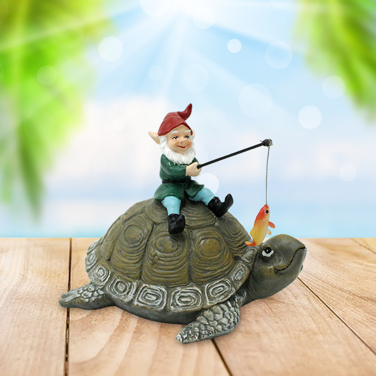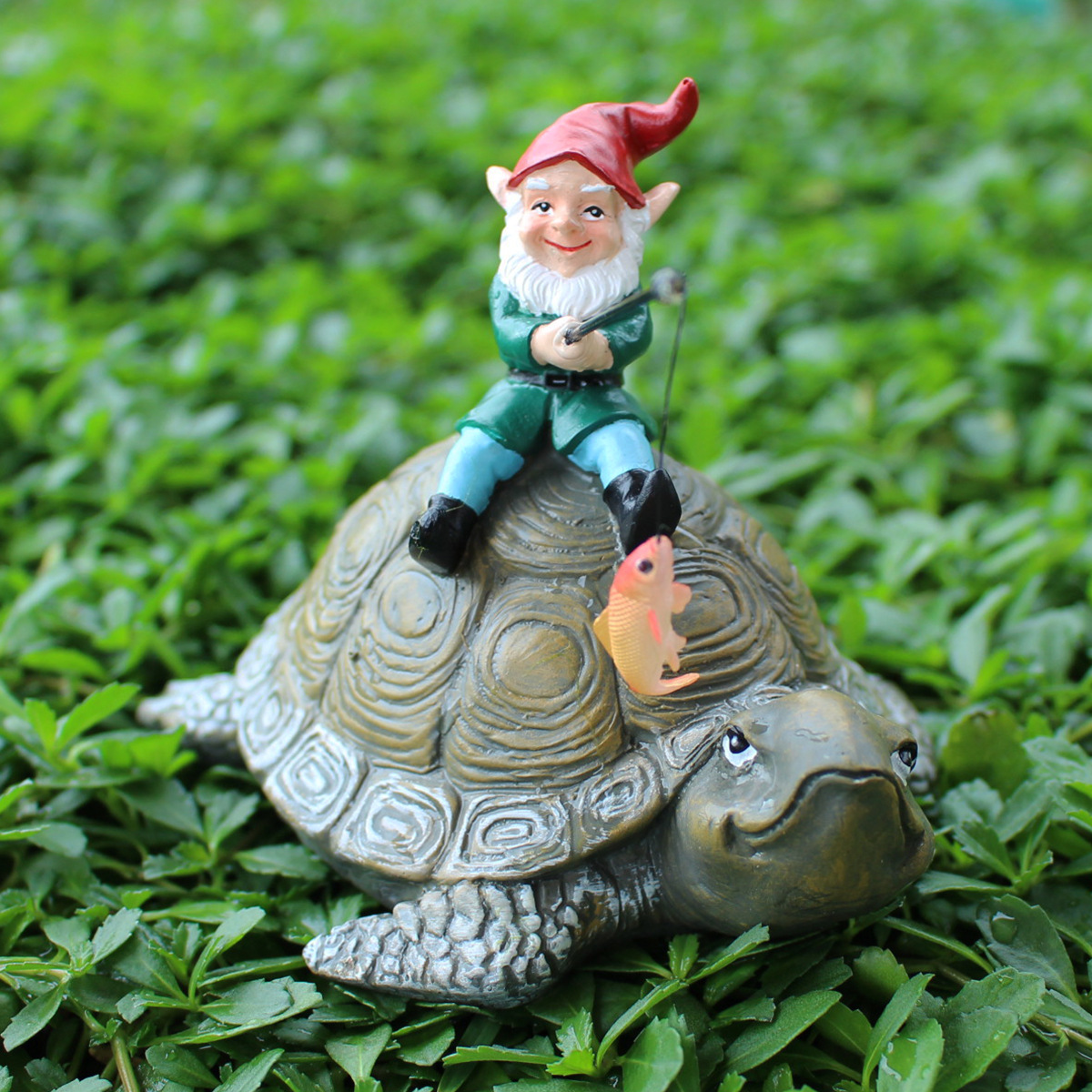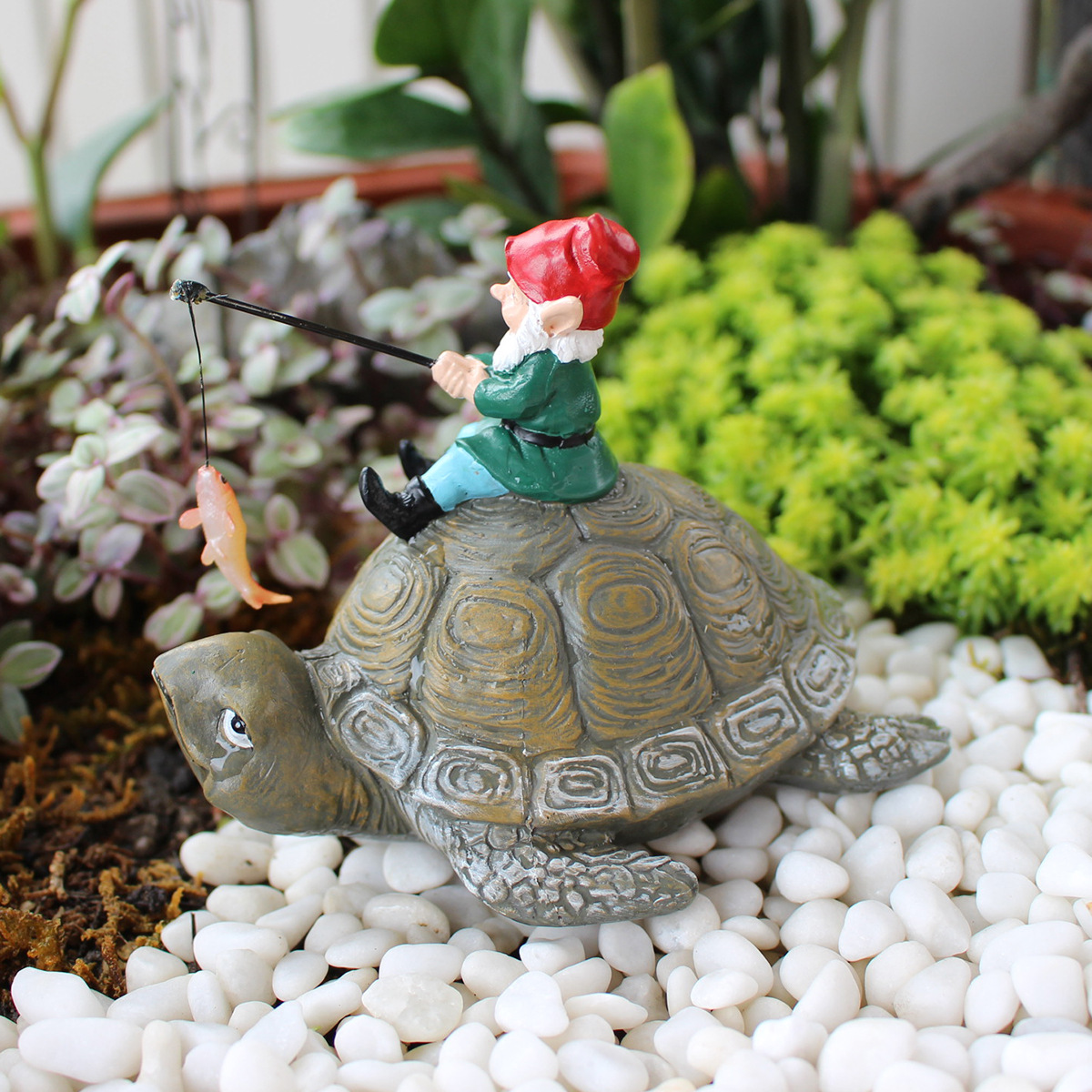 새로운 드워프 앉아 거북이 낚시 수지 공예 데스크탑 원예 잔디 장식품 창조적 인 집들이 장식스토어 가기