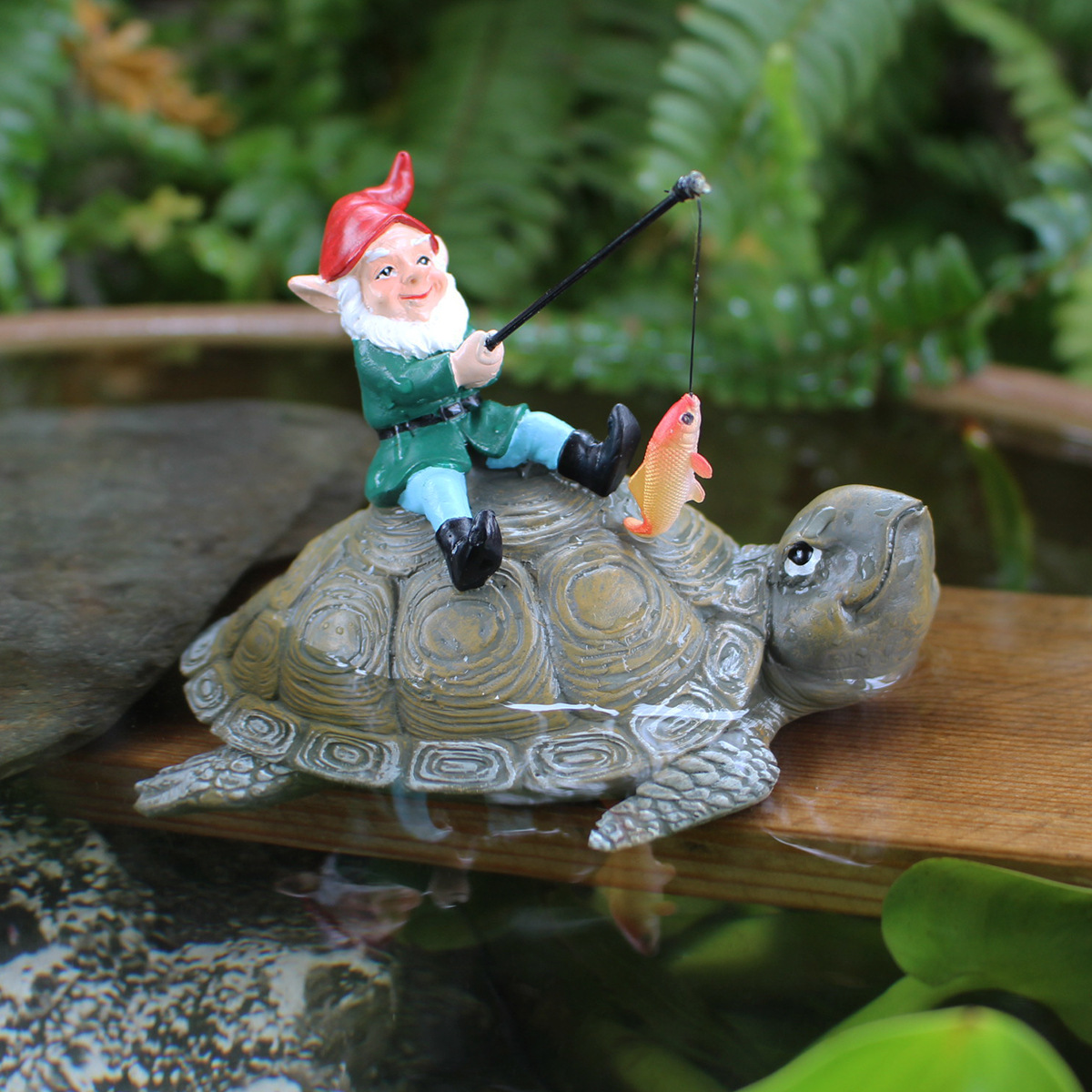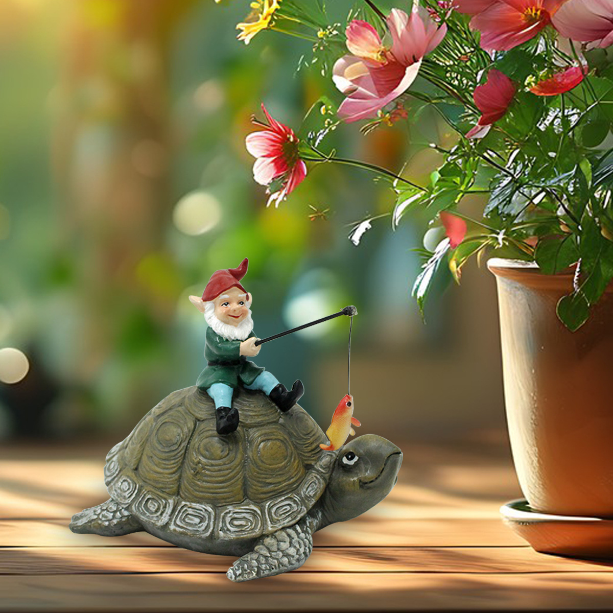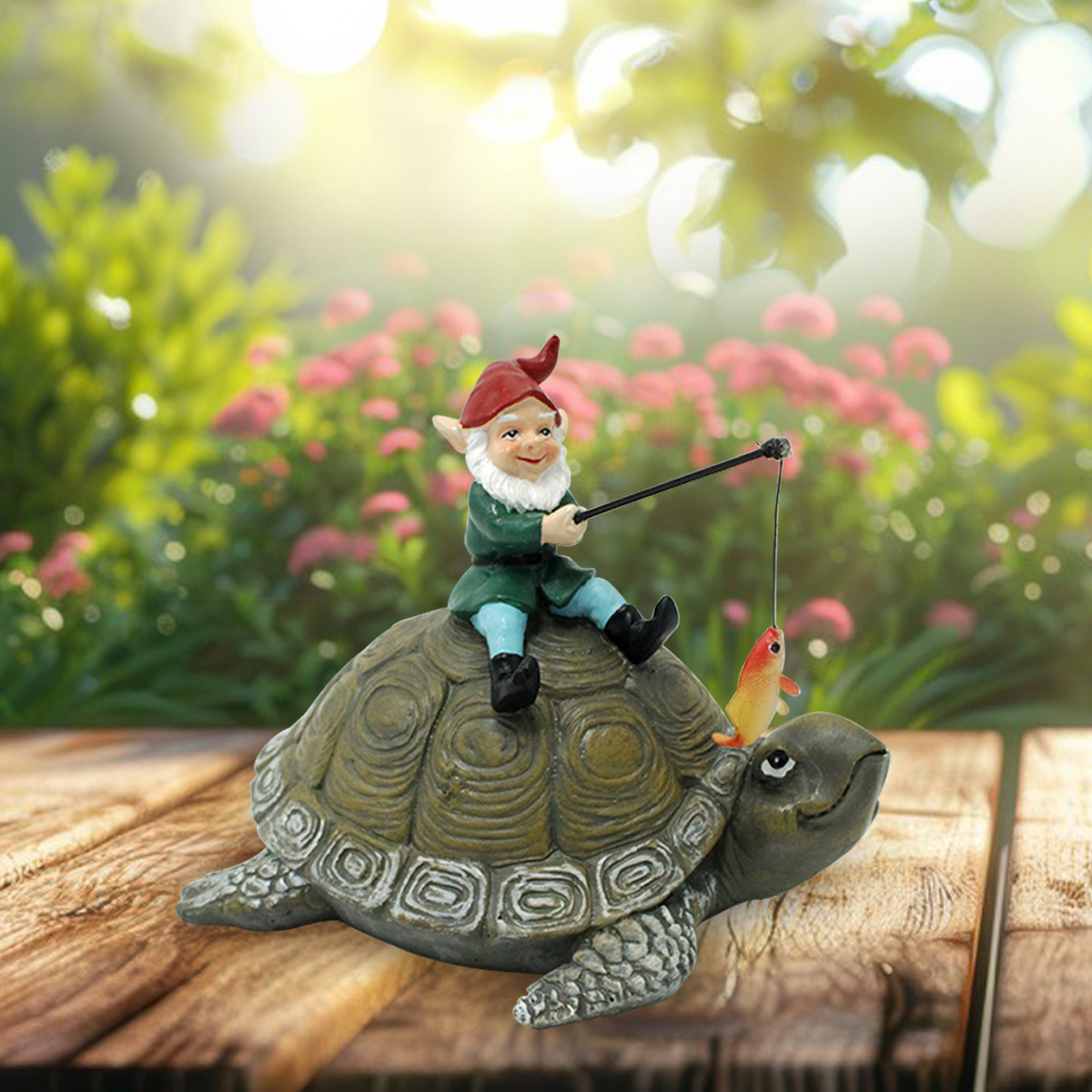 새로운 드워프 앉아 거북이 낚시 수지 공예 데스크탑 원예 잔디 장식품 창조적 인 집들이 장식스토어 가기
