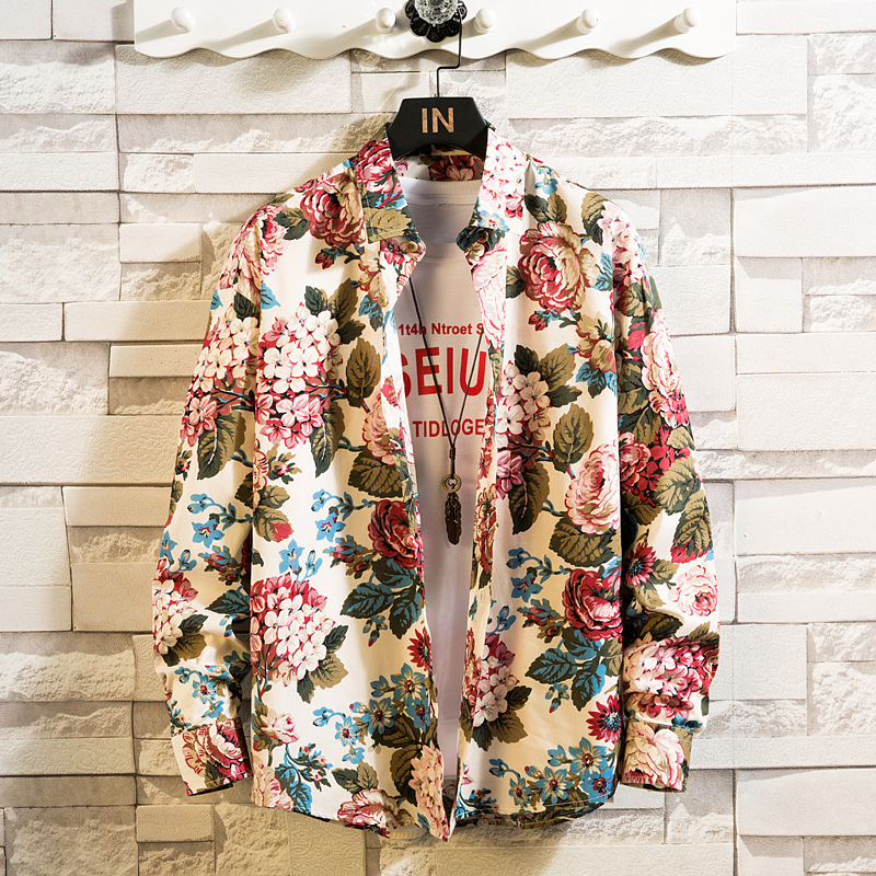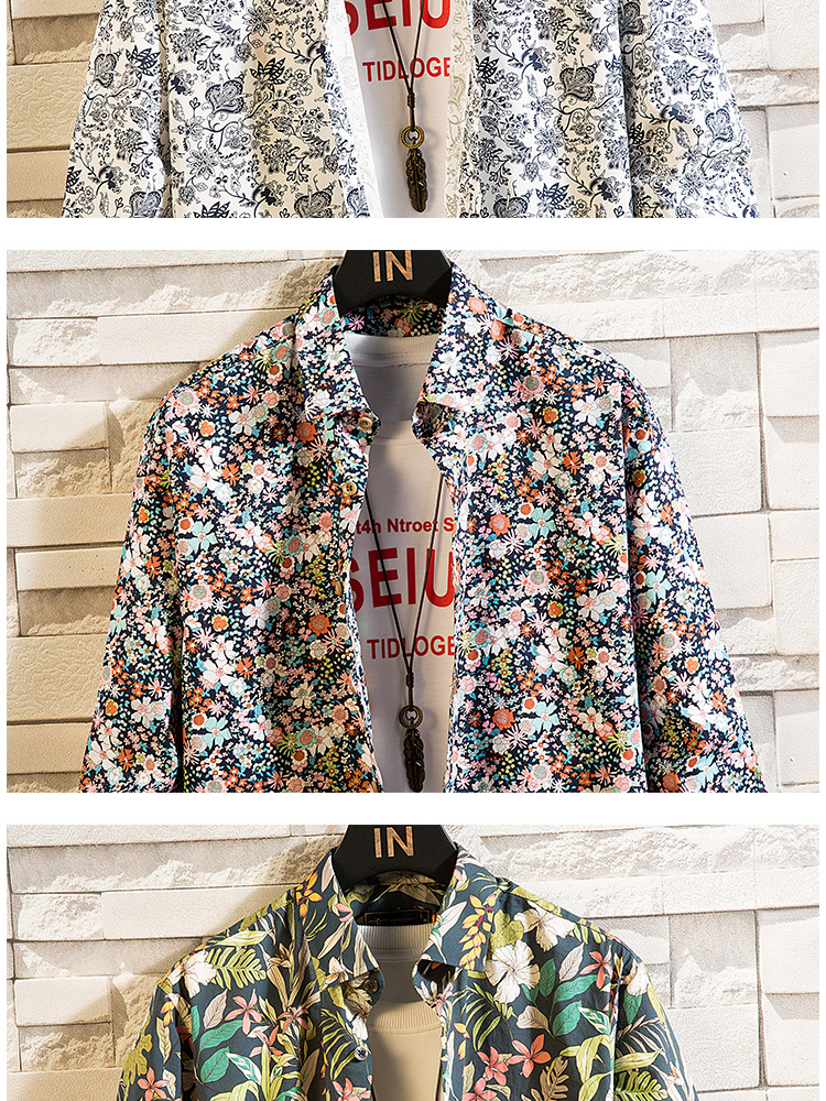 아마존 국경 유럽 및 미국 남성 패션 꽃 셔츠 남성 하와이 비치 스타일 플러스 사이즈 셔츠 코트 남성
