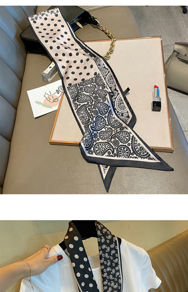 양면 긴 작은 스카프 여성 사업 착용 OL 리본 봄 여름 한국 새로운 장식 작은 스카프 물방울 헤어 밴드
