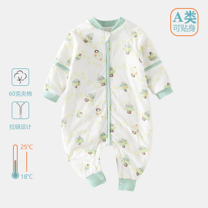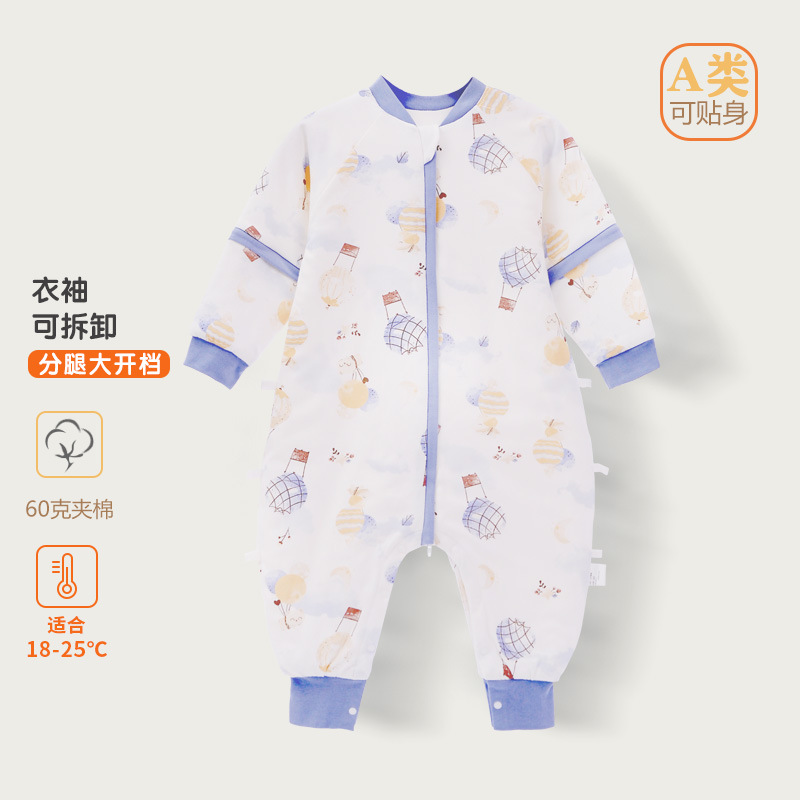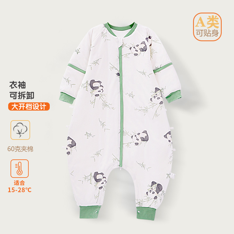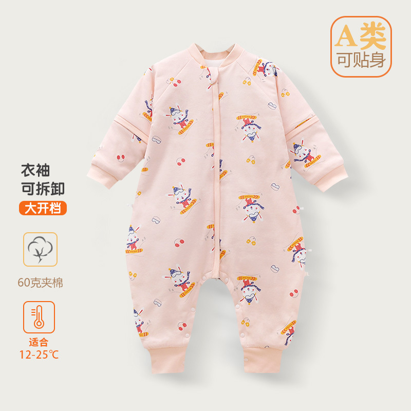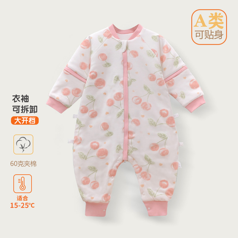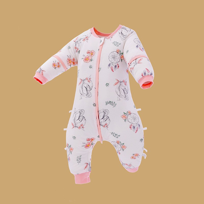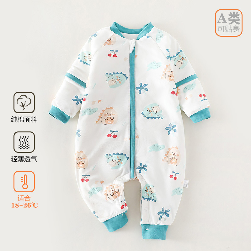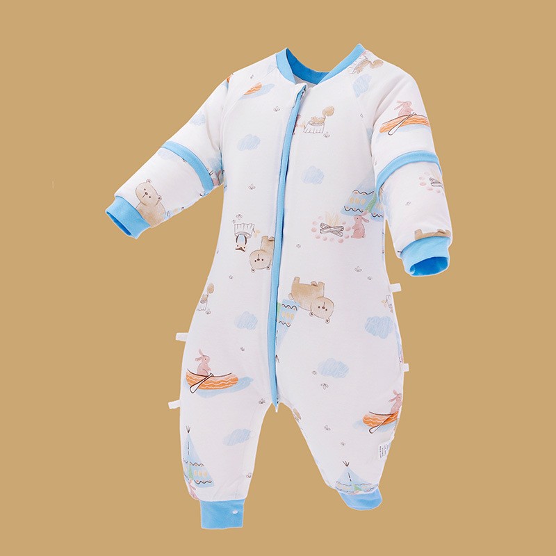 안양 아동복 유아용 A급 순면 침낭 사계절용 60g 면 어린이 발차기 방지 이불 탈부착 가능한 소매 아기 옷