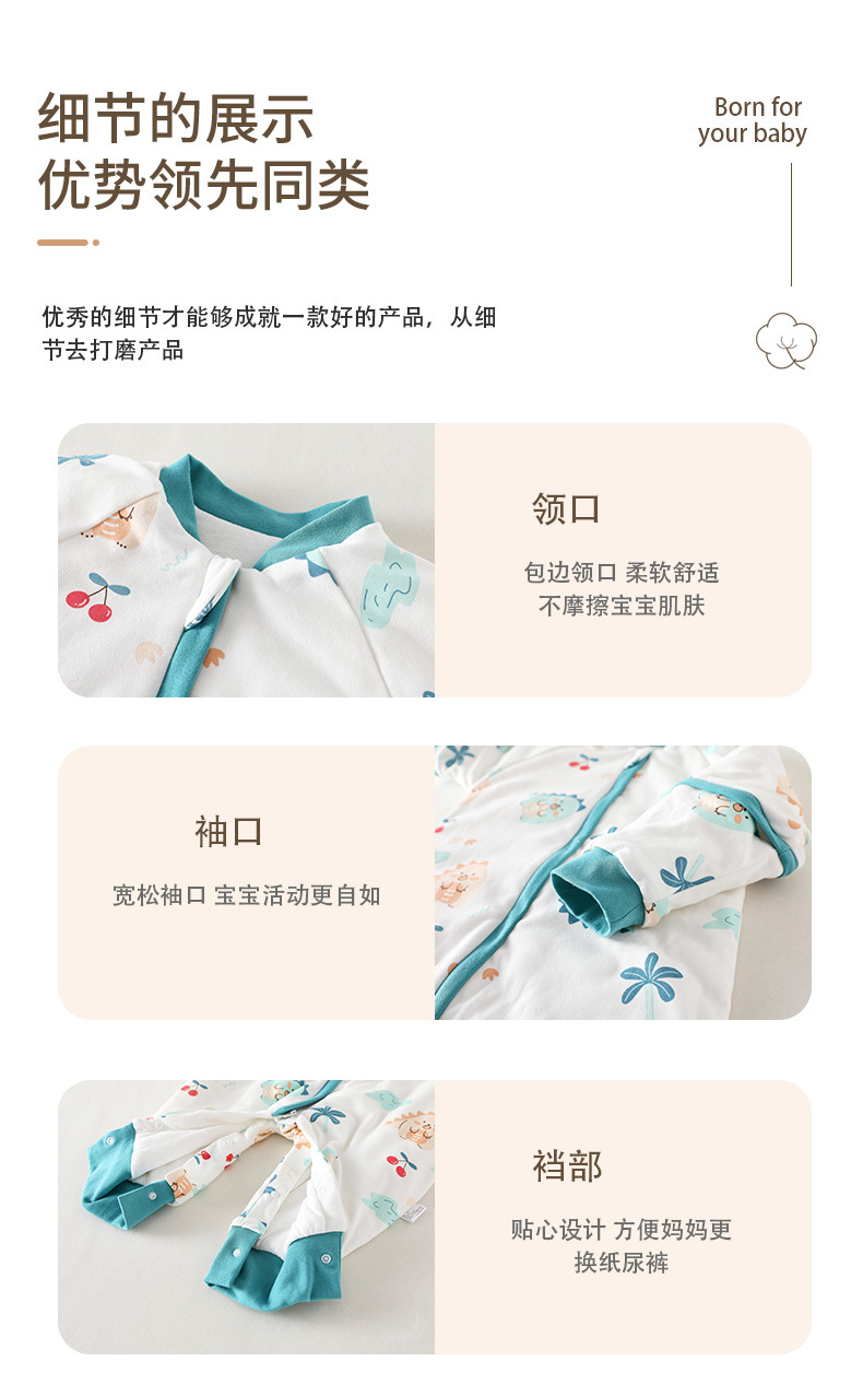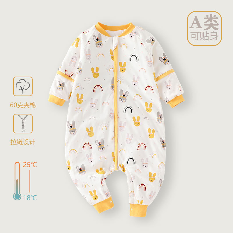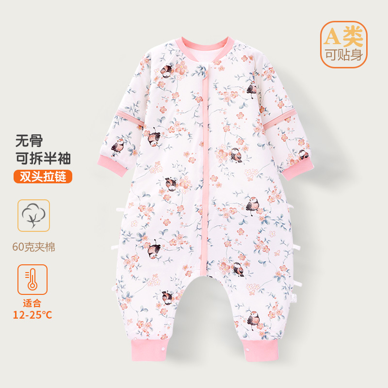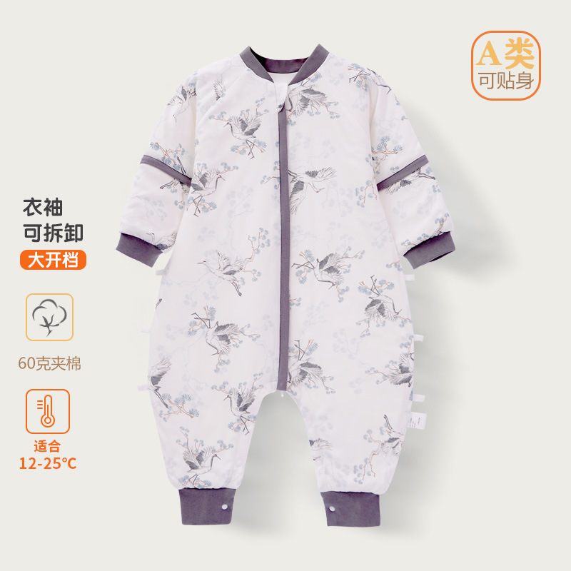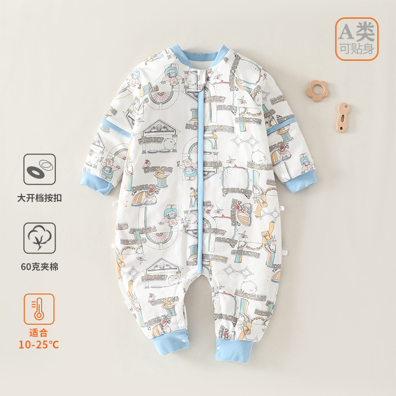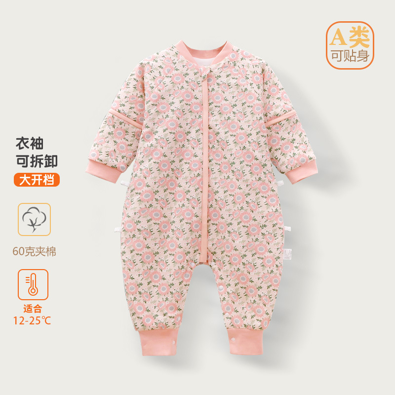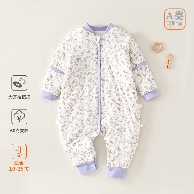 안양 아동복 유아용 A급 순면 침낭 사계절용 60g 면 어린이 발차기 방지 이불 탈부착 가능한 소매 아기 옷