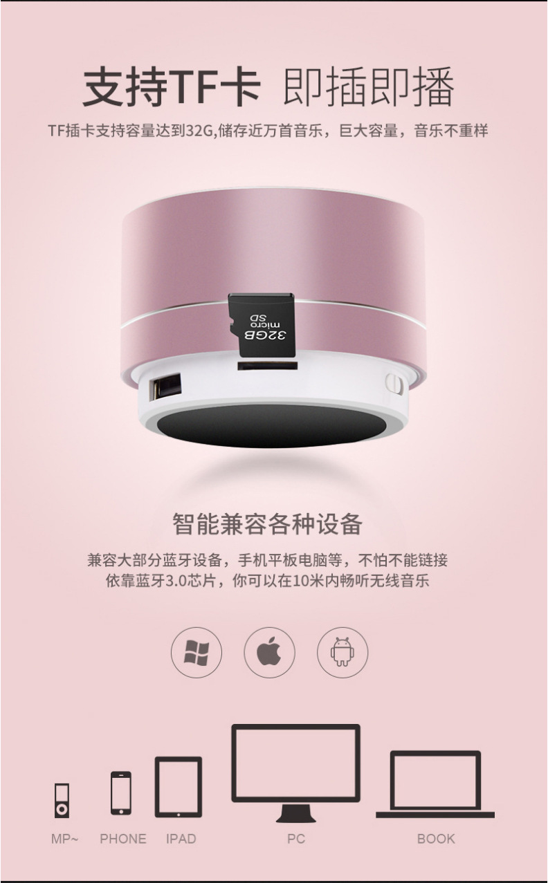官方标配:金属A10蓝牙音箱一台、充电线1条、纸盒包装