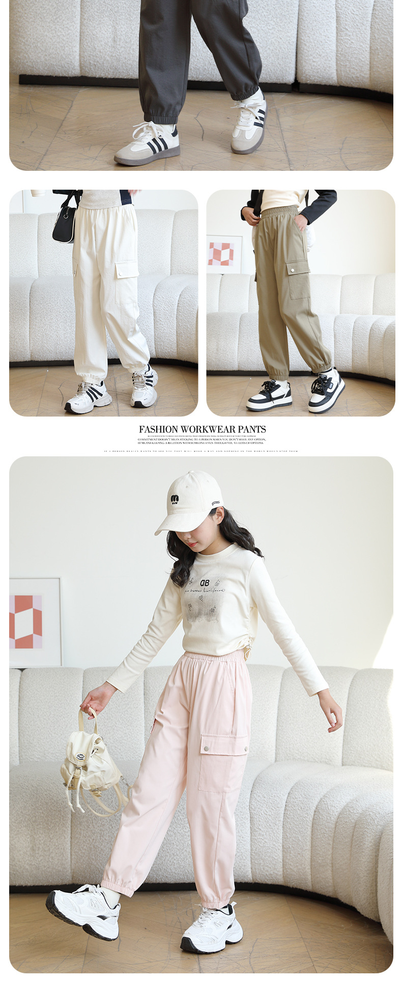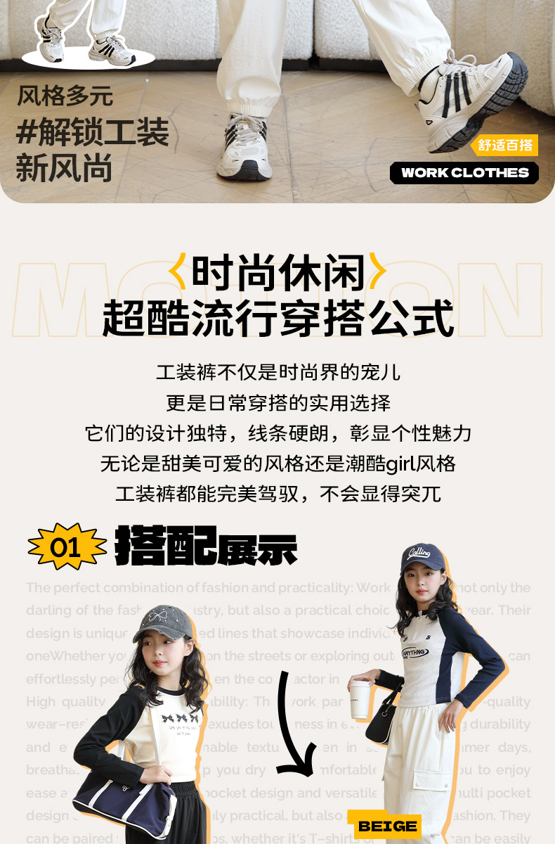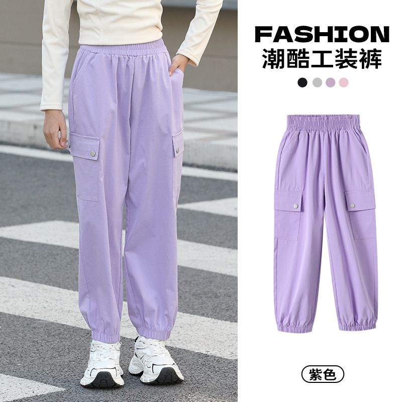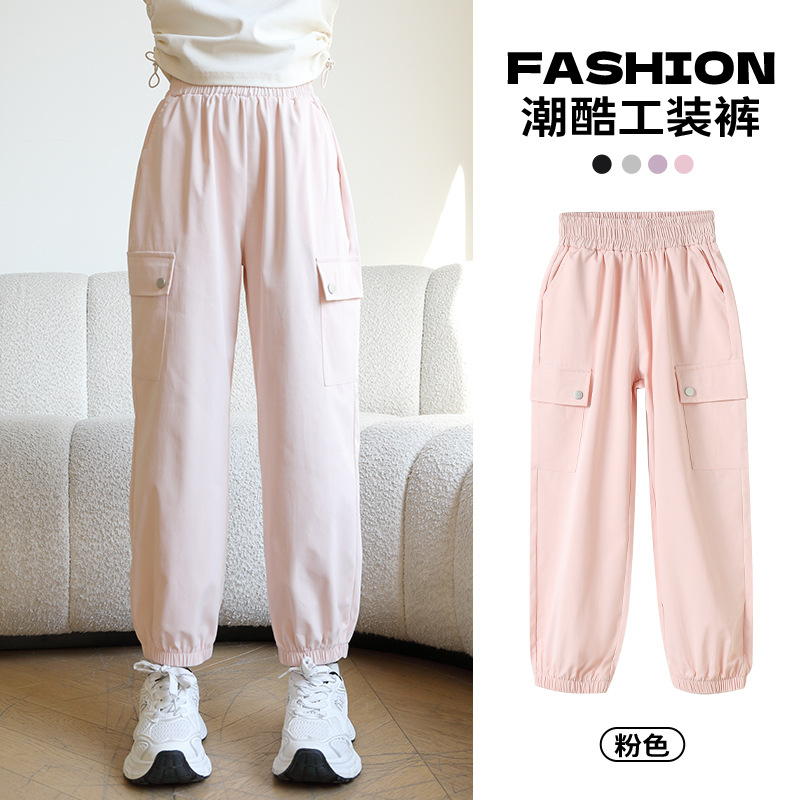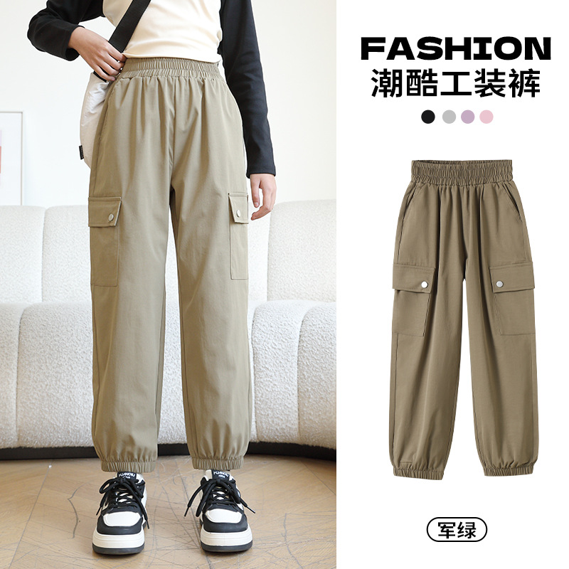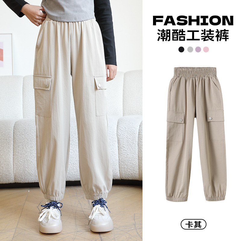 Youpin 아기 소녀 작업복 2025 새로운 스타일 소녀와 소년의 트렌디하고 멋진 봄, 가을 중대형 어린이 캐주얼 바지